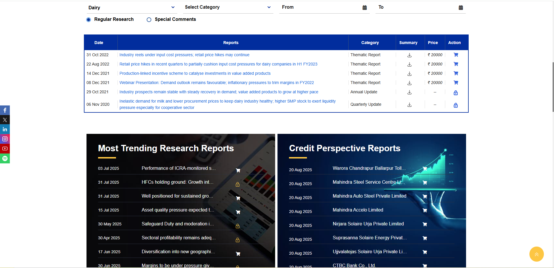 ICRA Industry Research provides opinion on key industry parameters such as demand, supply, investments, prices, and profitability and also covers topical issues and trends, and analysis of significant industry developments from the macro and micro perspectives.ICRA Research would typically comprise:Business and Profitability outlook; Industry analysis on business parameters; Competitive landscape; Update and impact of regulatory environment; Key challenges; Pricing, cost, and industry profitability; Comments on performance of key listed players