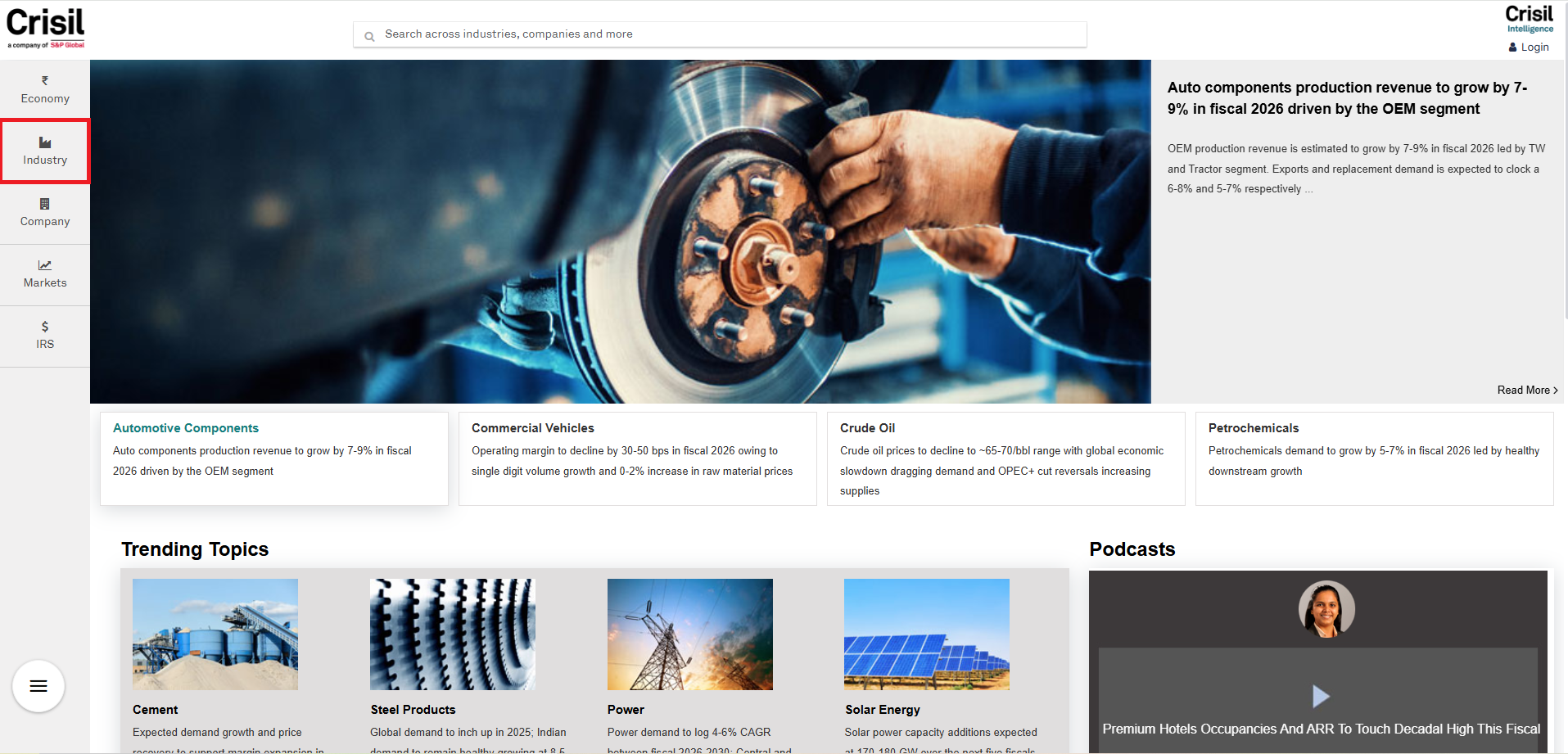 CRISIL Research is the country’s largest independent and integrated research house with strong domain expertise on Indian economy, industries and capital markets. Providing Comprehensive research coverage on the Indian economy, industries and corporates (Access to EcoView and research of 76 +industries)