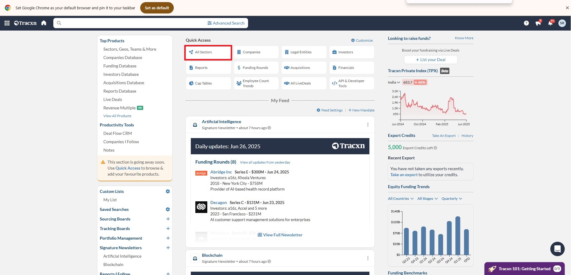 Tracxn is a Private Market Research Platform tailored for students interested in exploring the world of Startups, Emerging Industries, Investment Trends, and much more. It is an invaluable resource that provides comprehensive insights, data, and information into the startup ecosystem, from company financials to details on funding rounds. Tracxn also provides detailed coverage on 4.01M+ companies worldwide, VC/PE analytics, and investment perspective analysis on 250+ industry sectors. Company profiles include detailed competitive landscape, funding information, and Tracxn analysts’ ratings.