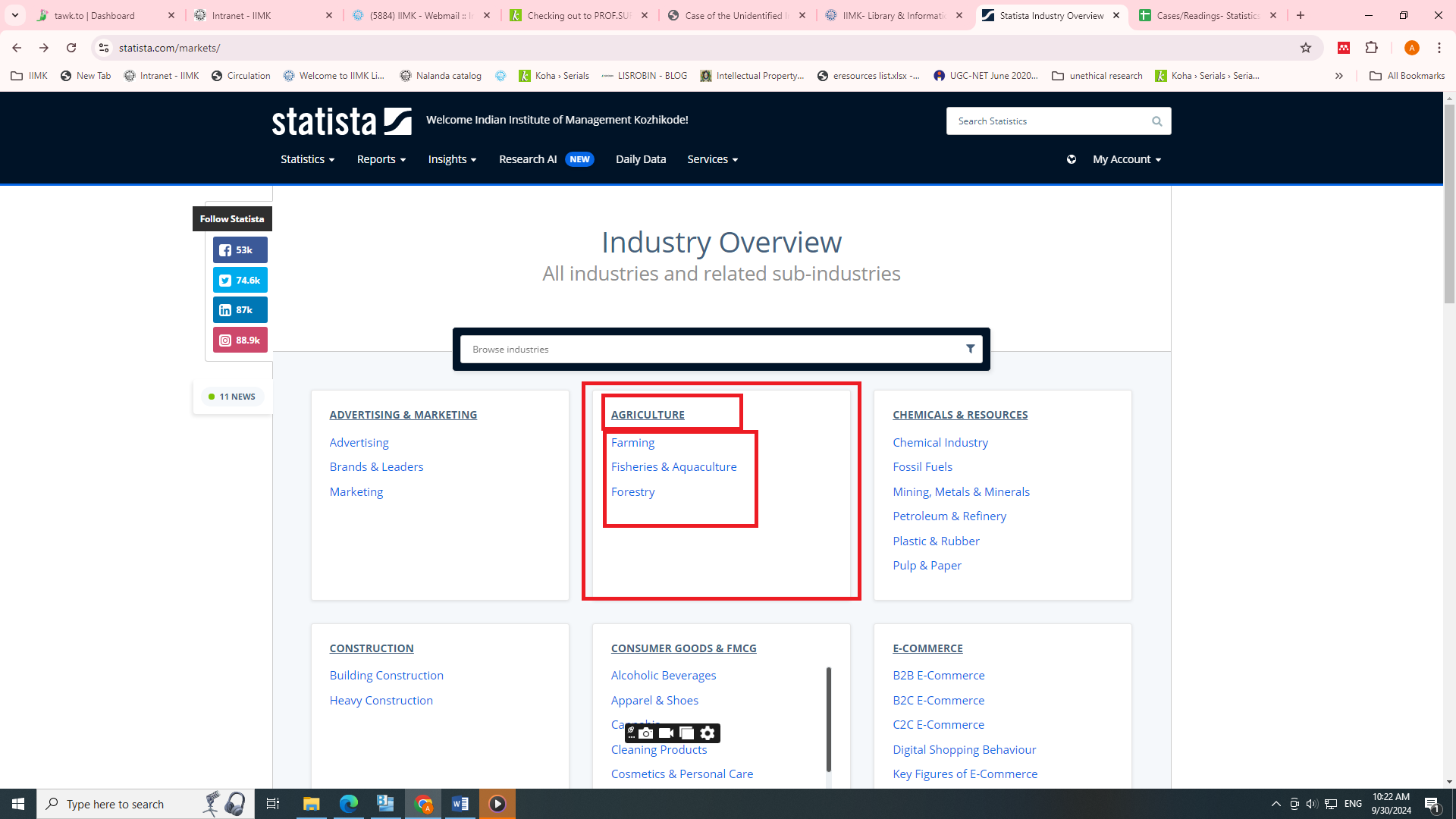 The agriculture and Dairy sector covers industries essential to food production, rural livelihoods, and national economic growth. The agriculture sector covers areas such as crop cultivation, soil and water management, farm technology, and agribusiness, while the dairy sector focuses on livestock management, milk production, processing, quality standards, and dairy-based value chains. Together, these sectors involve both scientific and commercial dimensions, supported by ongoing research, innovation, and policy development. This guide brings together the major databases that support study and research in these fields. Users will also find guidance on how to search for this information from these resources.