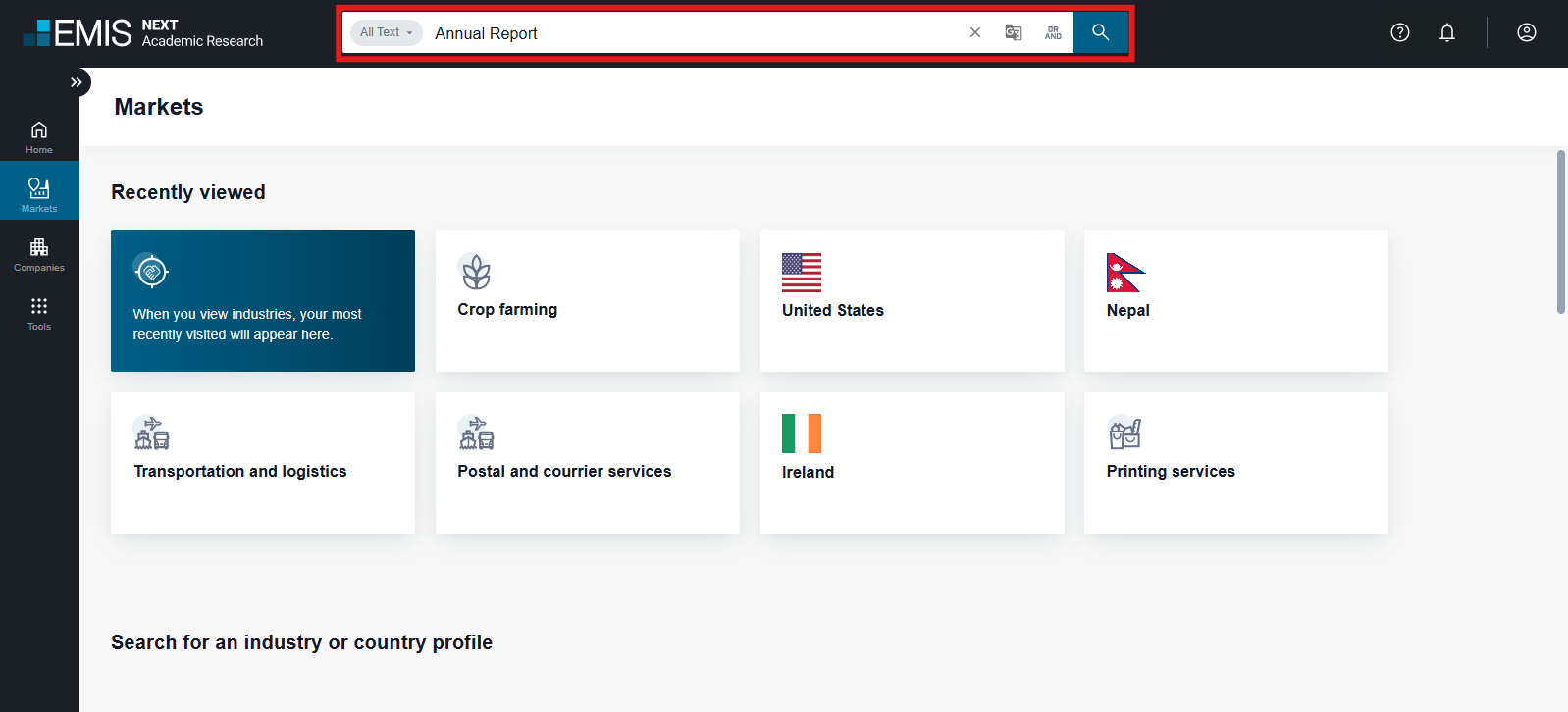 Emerging Markets Information Service (EMIS) Intelligence delivers deep, rich company and industry information alongside the relevant proprietary and multi-source news, research, and analytics that allow professionals to make profitable decisions faster. This single resource of hard-to-get information covers emerging markets, includes company profiles and financials from listed and private companies, offers single company and industry analysis, and delivers proprietary and multi-source news and research publications, all delivered via an easy-to-use interface.