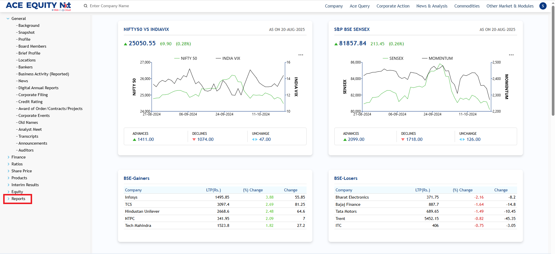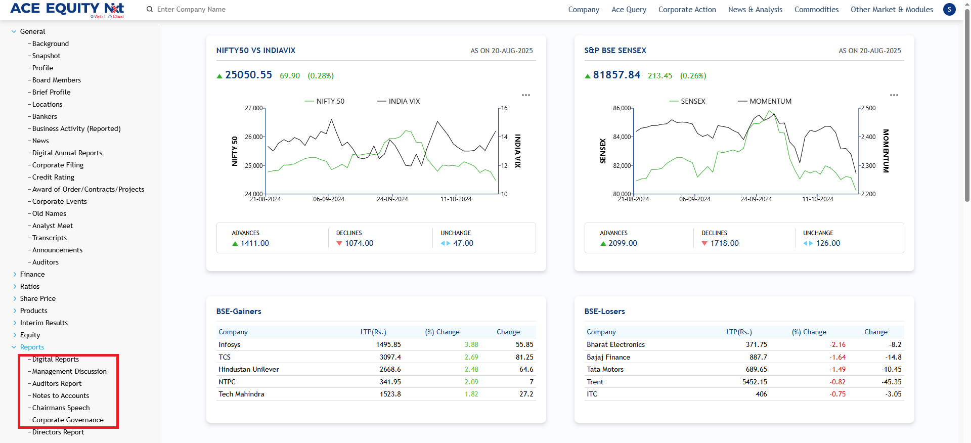 ACE EQUITY Nxt..is a Windows based application where the product data is hosted in cloud. Product provides comprehensive financial data of listed and private companies. The company financial information is available for more than 40,000 Indian companies, including 7,000 listed and 33,000 private with 1750 unique financial data fields compiled from the Annual Report. It also provides company’s non-financial information such as board of directors, share holding pattern, Corporate actions etc. The application is designed in such a manner that with minimal clicks user can achieve the desired output