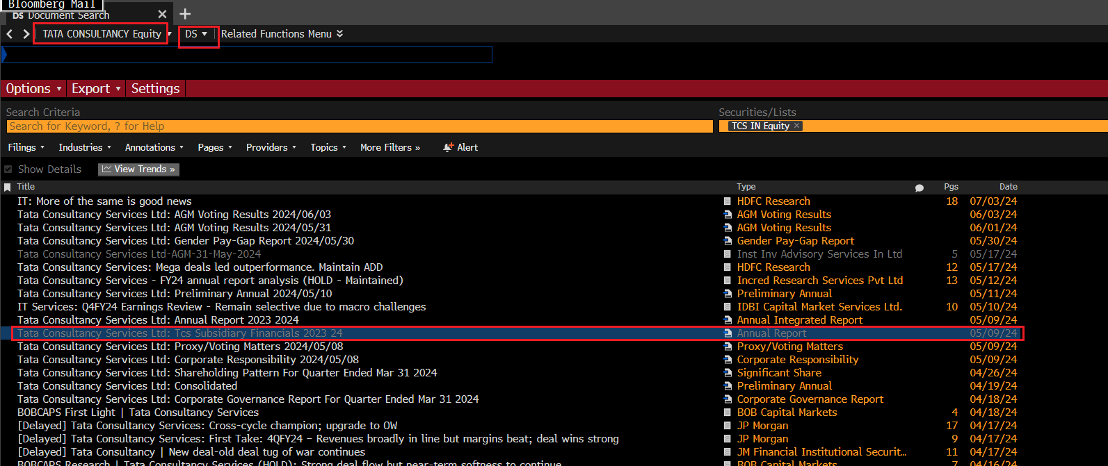 The Bloomberg Professional Service is a research tool for financial professionals as well as business academics who require in-depth and timely access to current business and company news, and financial and economic data. The database provides financial information on equities, stock market indices, commodities, fixed-income securities, currencies, and futures for both international and domestic markets. It provides annual reports of the companies generally for last 10 years. The Bloomberg imparts current and historical information about the board members, designation, their tenure in a board, educational qualification, contact details, etc