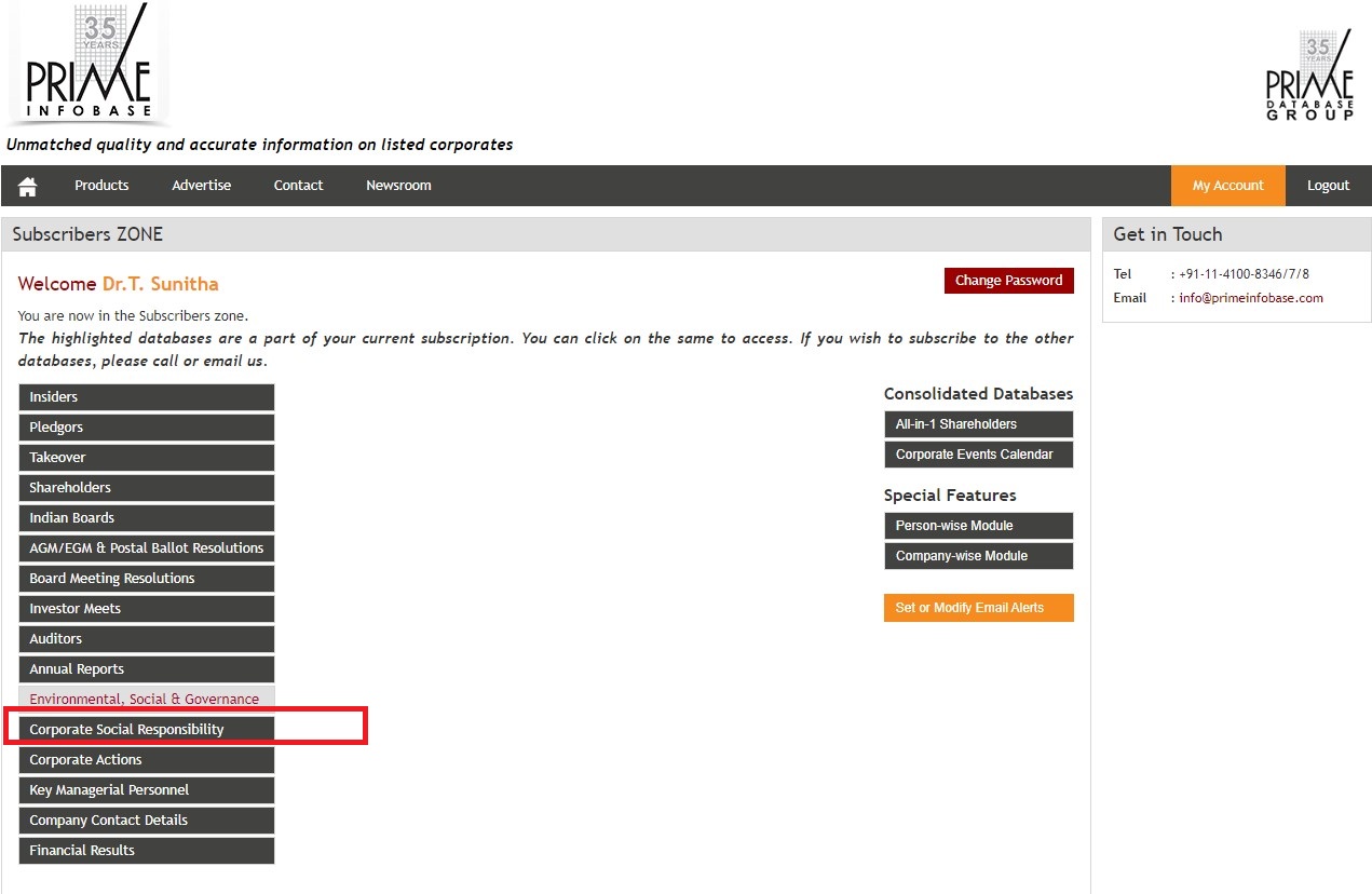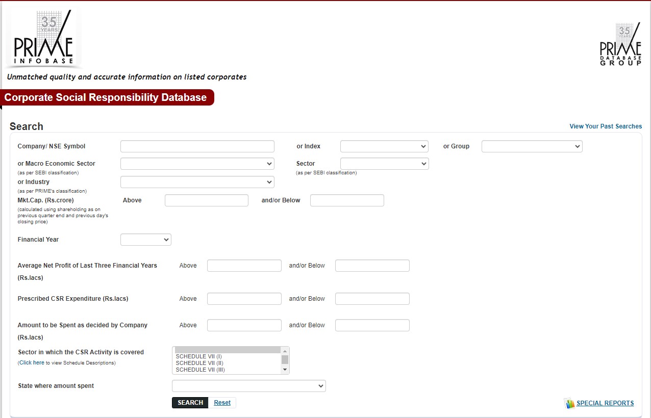 PRIME Database Group is India's leading data provider on the capital market. The library can access Prime Database, Prime Infobase, and Prime Mutual Funds Database.Prime Infobase Database (http://www.primeinfobase.com/) Prime Infobase provides timely (daily updated), complete (all companies listed on NSE and companies exclusively listed on BSE with a market capitalization of more than INR 1000 crore), credible and clean data and analytics on corporates in an extremely easy-to-use and searchable manner.Prime Mutual Funds Database (http://www.primemfdatabase.com/) Prime Mutual Funds database provides timely, complete, credible, and clean data and analytics on mutual funds, covering their monthly holdings/portfolios, assets under management, trading in debt & money market securities, scheme performance and voting details among others, in an extremely easy-to-use and searchable manner (subscription covers Module A, B, E, F & G).