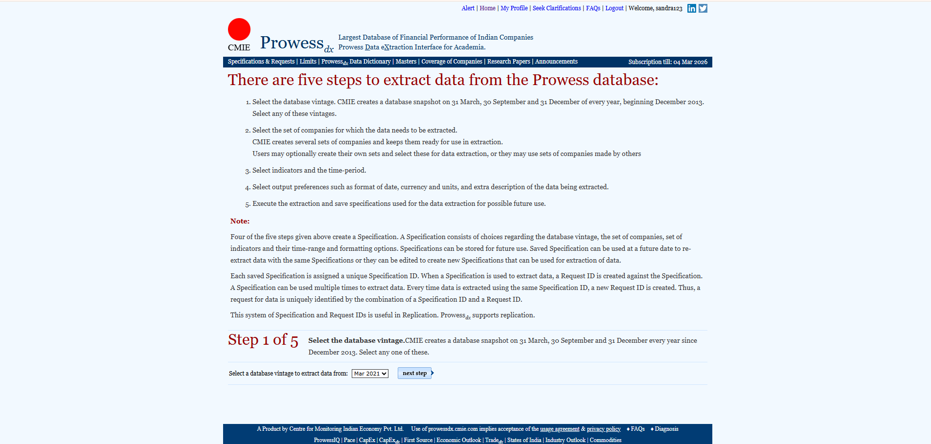 Prowess is a delivery of the Prowess database that is dx specially designed for academia. It facilitates easy download of large amounts of data from the Prowess database. Prowess India delivers data for over 50,000 companies. dx It provides a time series of financial and market data since 1990. The database does not suffer any deliberate survival bias.