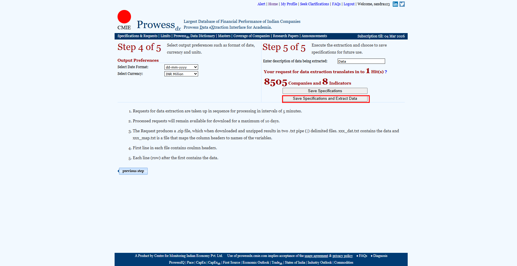 The service facilitates storage of specific files used to download data, sharing of the specific files and replicaon of downloads. Prowess delivers the data as dx delimited text files. The service envisages users processing the downloaded data in professional statistical packages or using their own software.