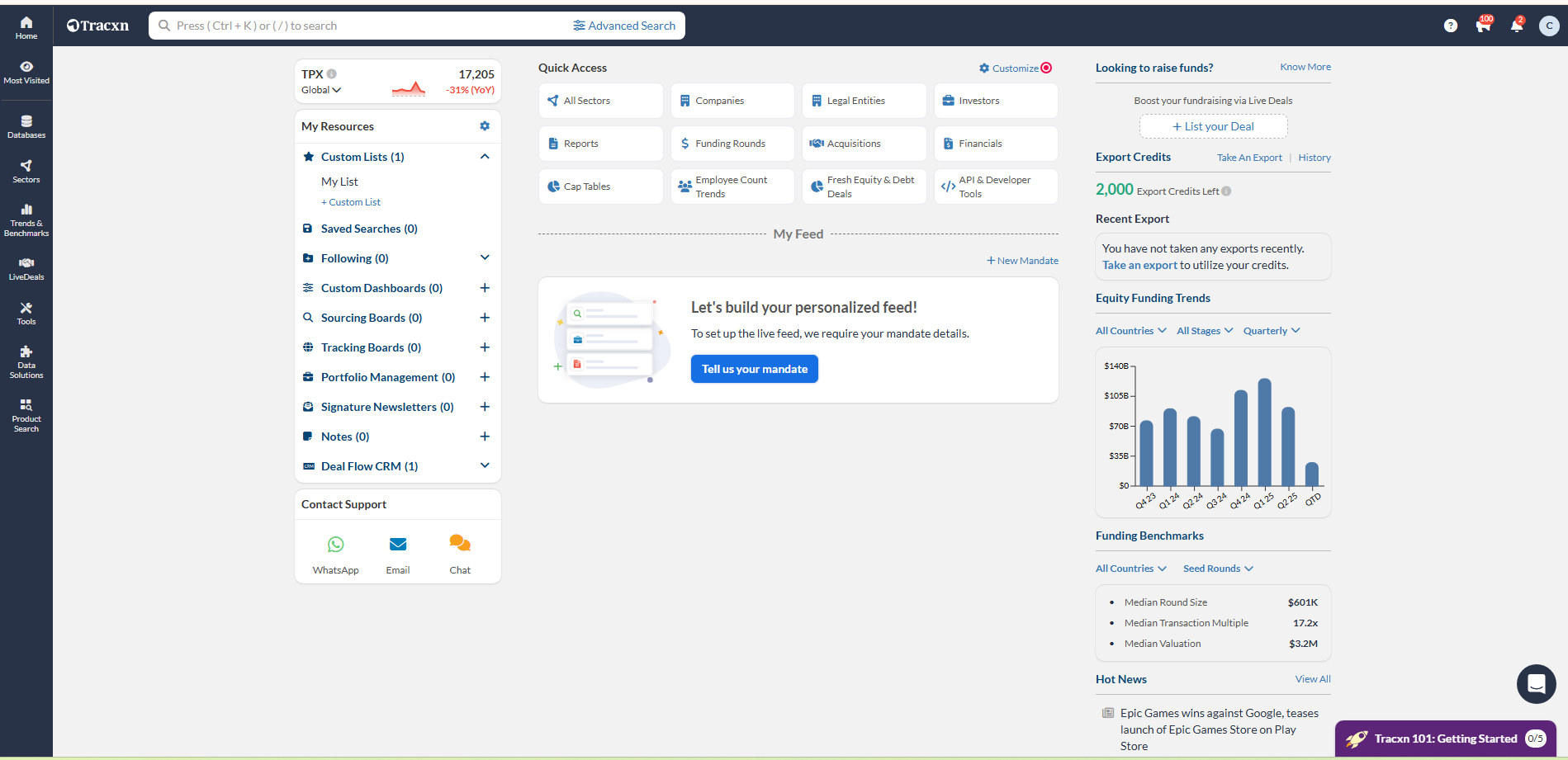 Tracxn is a Private Market Research Platform tailored for students interested in exploring the world of Startups, Emerging Industries, Investment Trends, and much more. It is an invaluable resource that provides comprehensive insights, data, and information into the startup ecosystem, from company financials to details on funding rounds. Tracxn also provides detailed coverage on 4.01M+ companies worldwide, VC/PE analytics, and investment perspective analysis on 250+ industry sectors. Company profiles include detailed competitive landscape, funding information, and Tracxn analysts’ ratings.