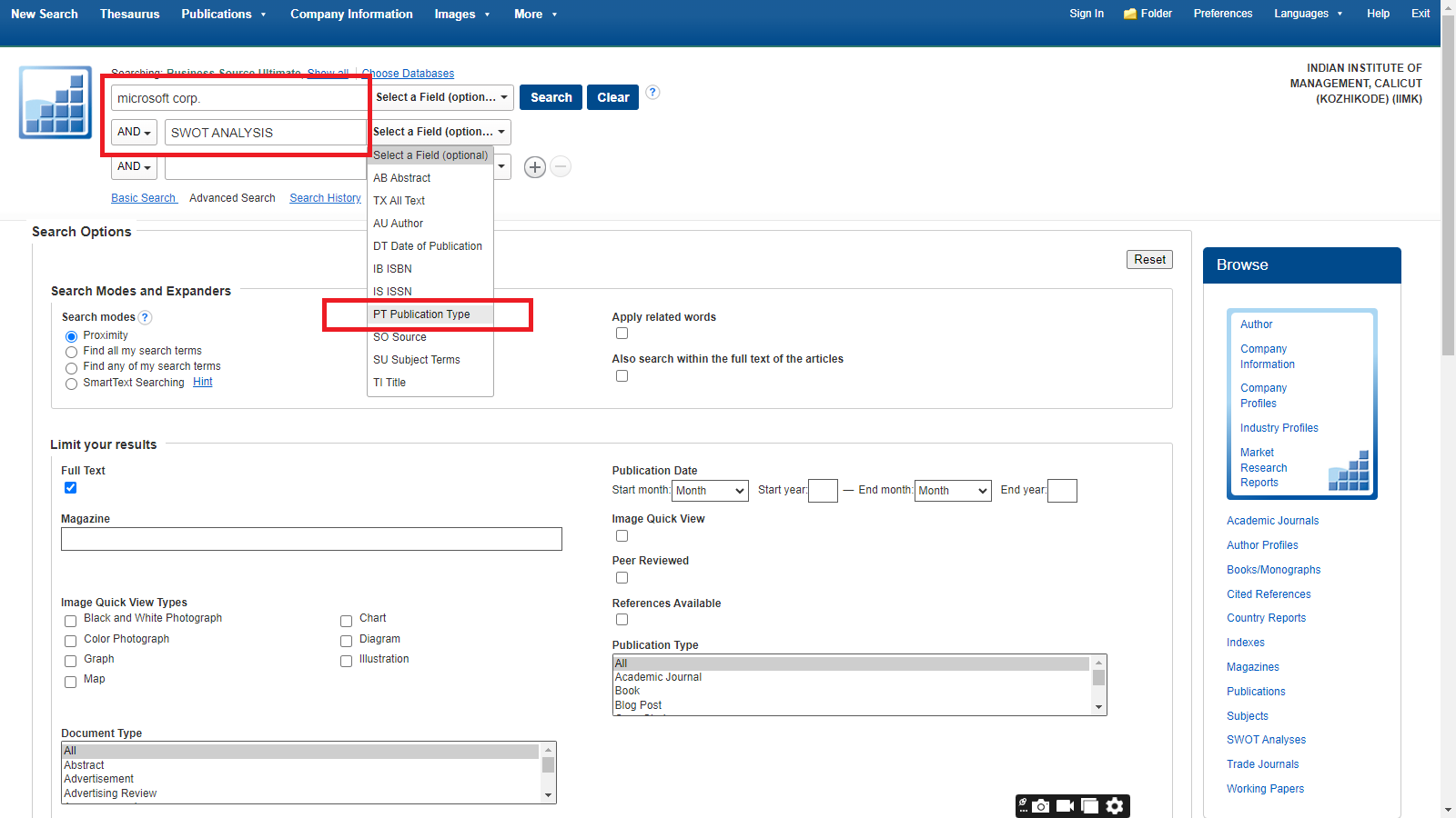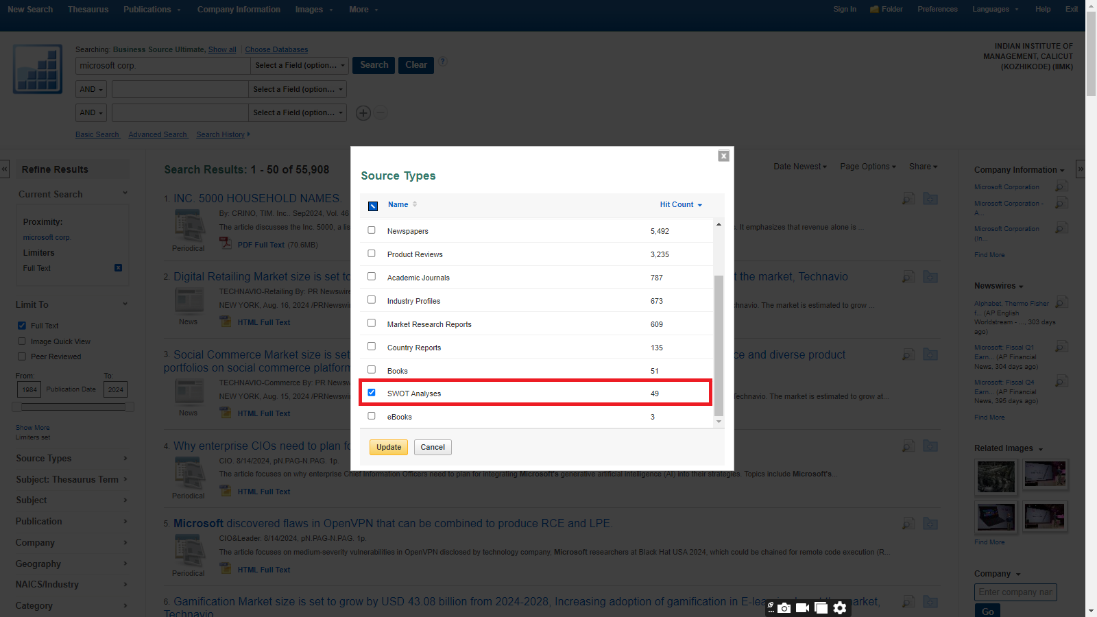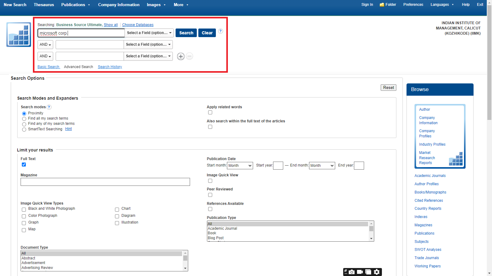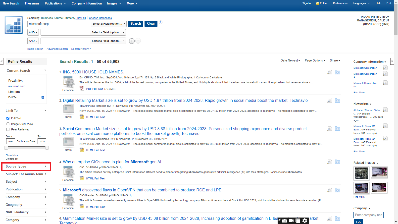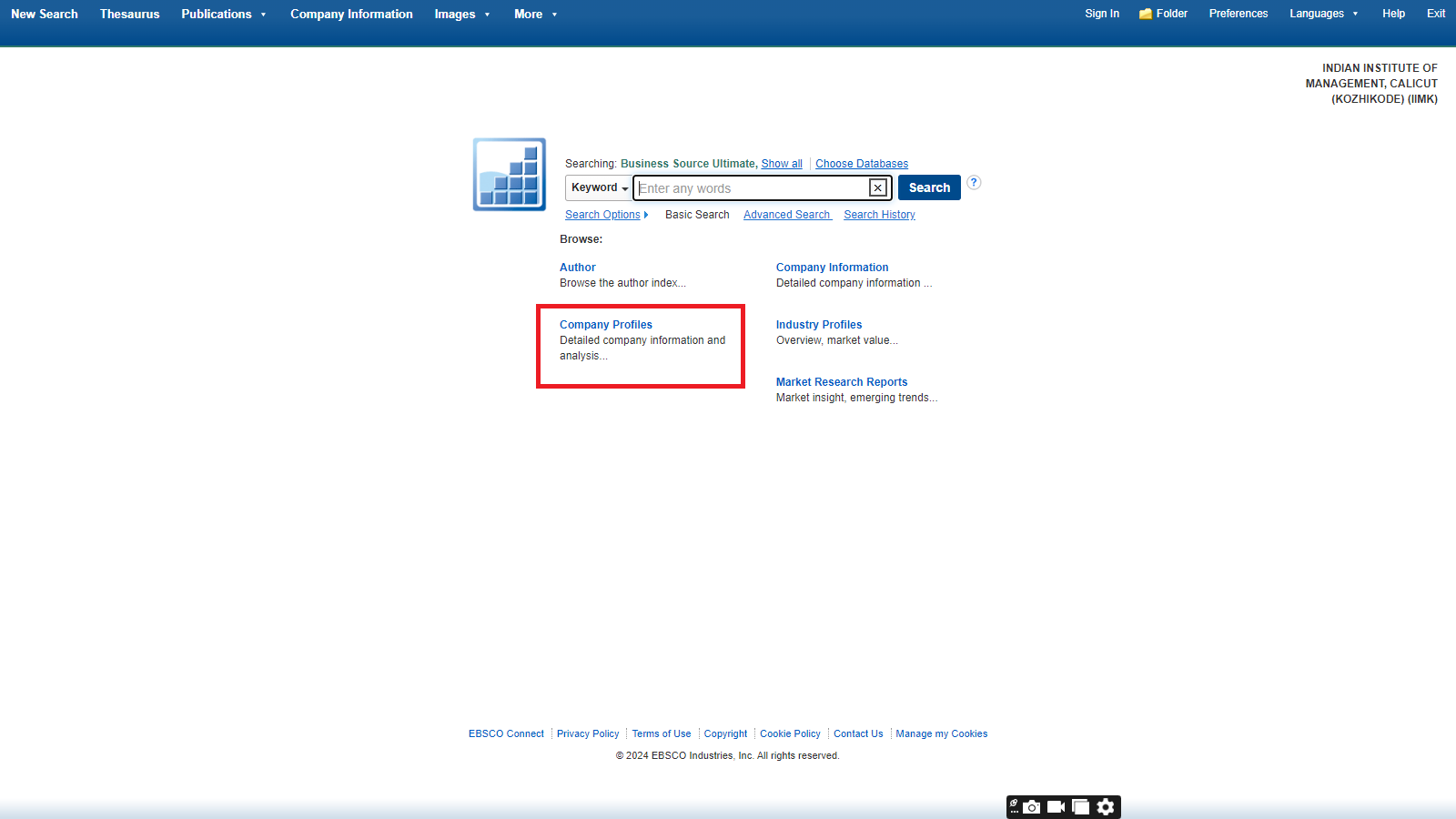 Business Source Ultimate is an aggregated full-text journal database covering almost all Business/ Management subjects like accounting, finance, banking, management information systems, production and operations management, economics, marketing, etc. The collection contains around 8000+ electronic full-text journals and magazines. It also provides profiles of companies and industries.