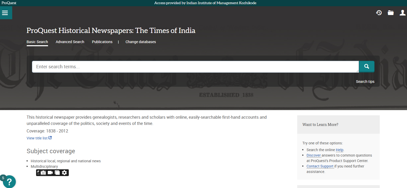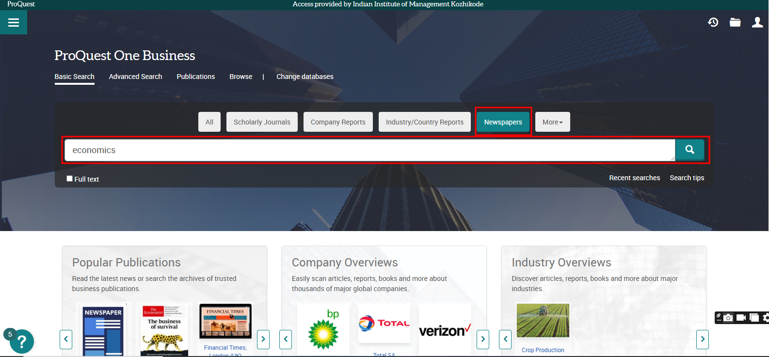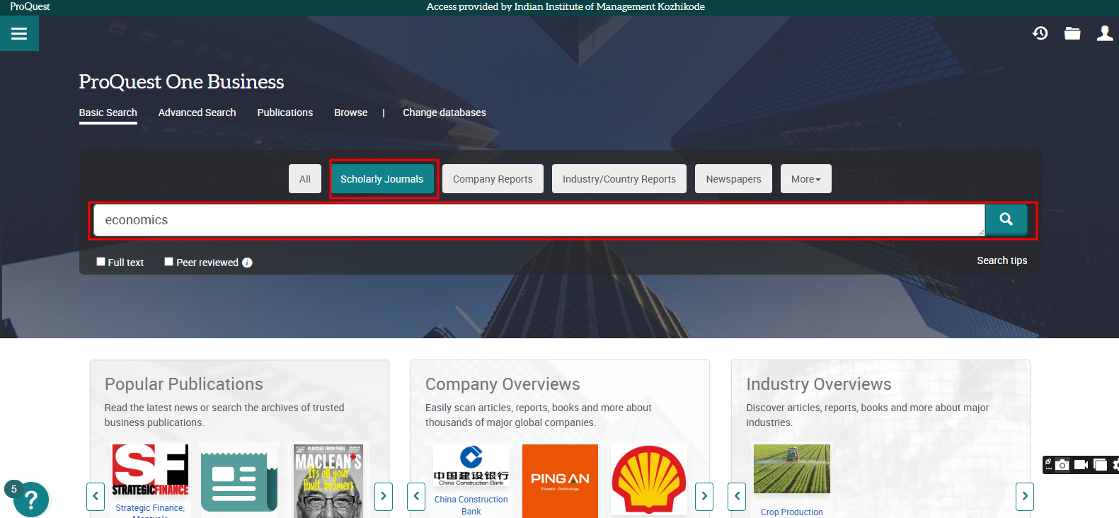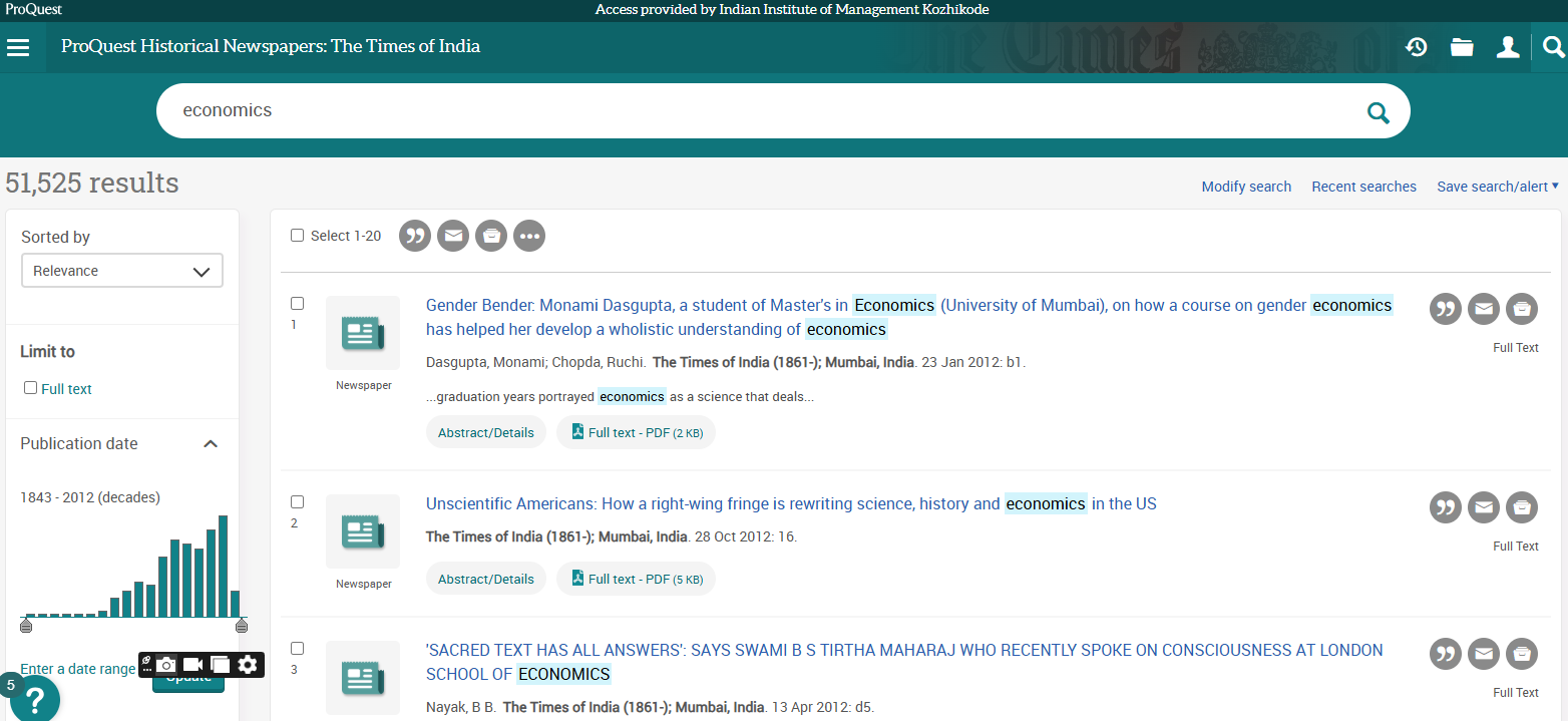 Business Source Ultimate is an aggregated full-text journal database covering almost all Business/ Management subjects like accounting, finance, banking, management information systems, production and operations management, economics, marketing, etc. The collection contains around 8000+ electronic full-text journals and magazines. It also provides profiles of companies and industries.