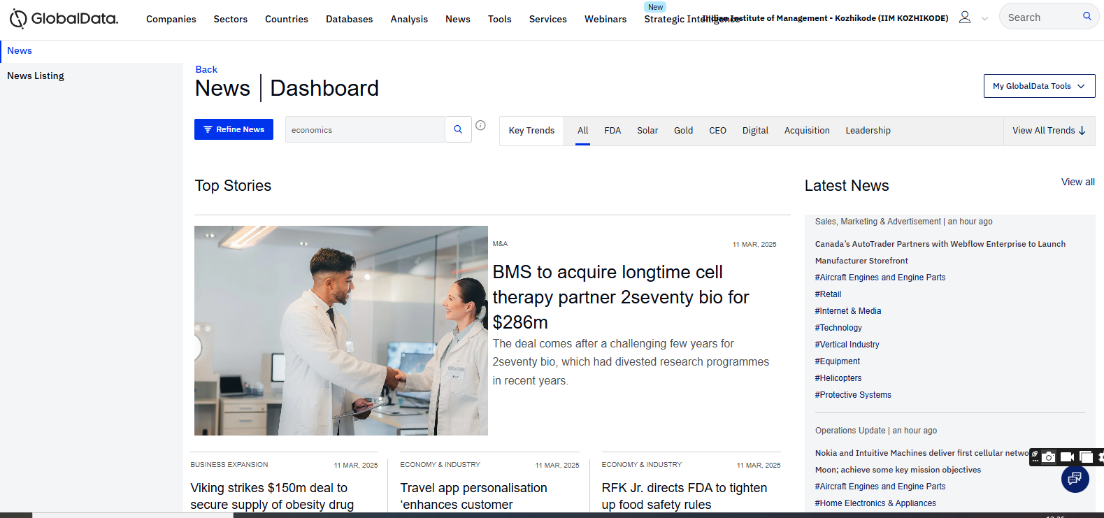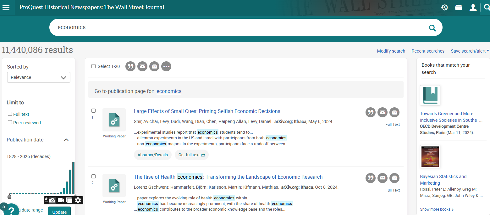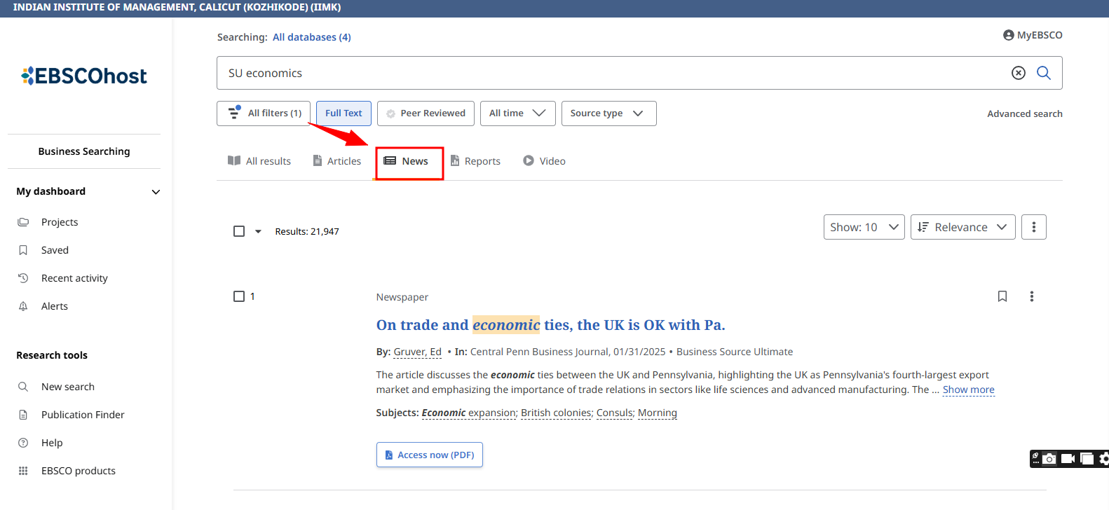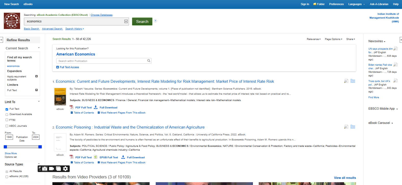 Business Source Ultimate is an aggregated full-text journal database covering almost all Business/ Management subjects like accounting, finance, banking, management information systems, production and operations management, economics, marketing, etc. The collection contains around 8000+ electronic full-text journals and magazines. It also provides profiles of companies and industries.
