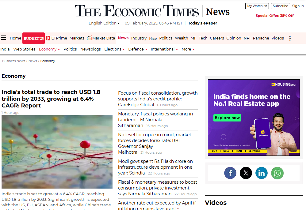 Economic Outlook offers unbiased analysis and short- to medium-term forecasts about the Indian economy. The service compiles a time series of more than 500,000 indicators from numerous reputable and authoritative sources.