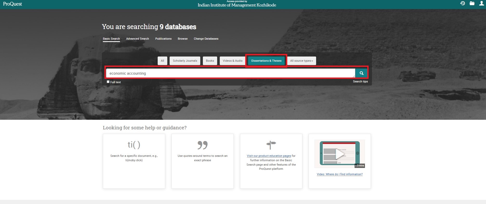 Library website>>Resources>>E- resources A-Z list →Click on F >>Films on Demand>>Advance search>>enter title in search bar >>Refine search >>Search >>Click on title.
