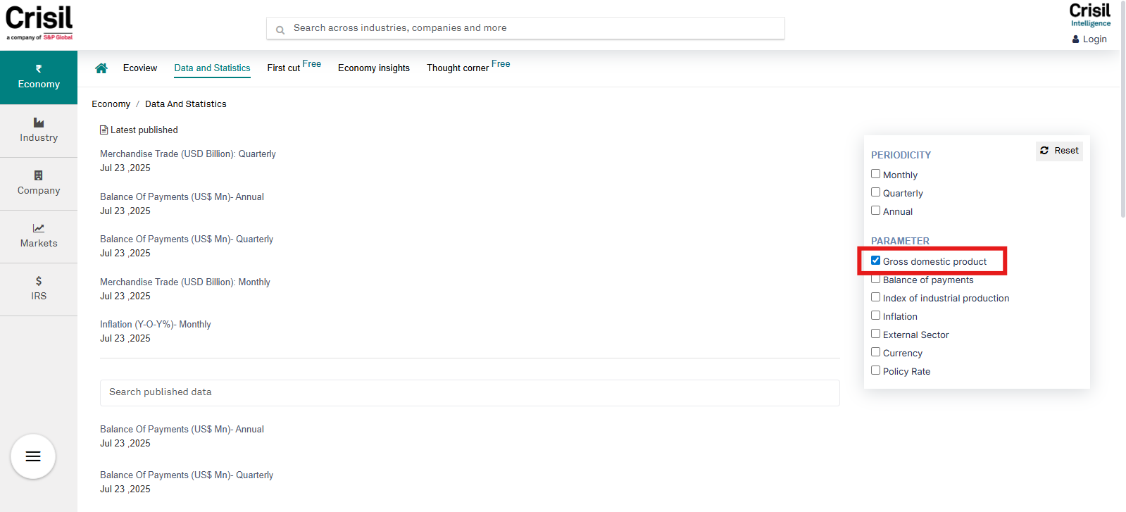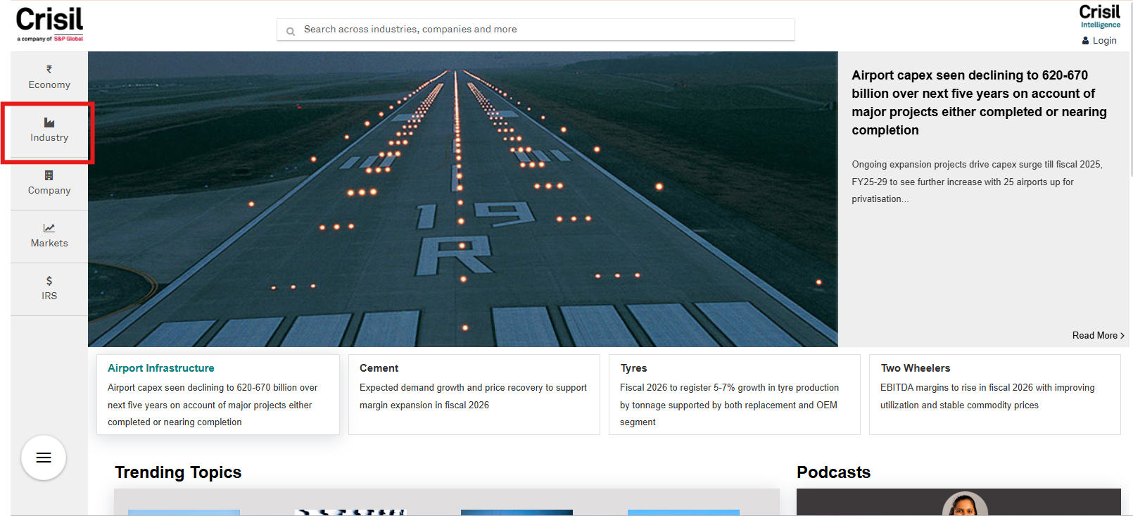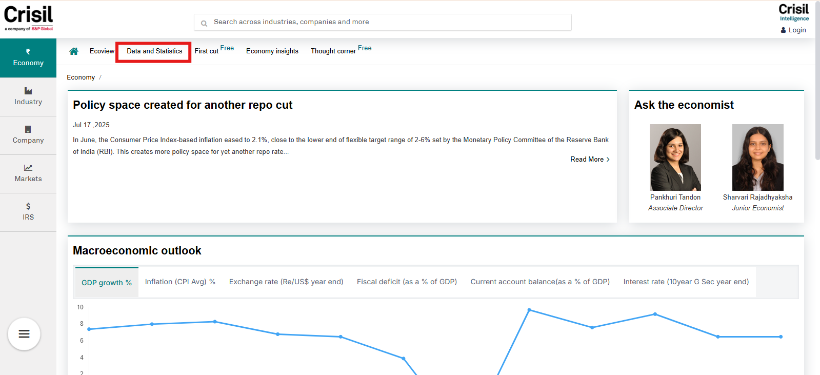 CRISIL Research is the country’s largest independent and integrated research house with strong domain expertise on Indian economy, industries and capital markets. Providing Comprehensive research coverage on the Indian economy, industries and corporates (Access to EcoView and research of 76 +industries)