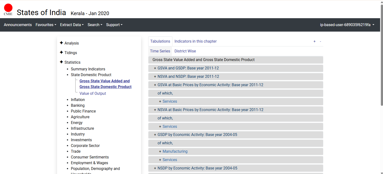 States of India is a large statistical compendium of the 37 states, union territories 724 districts of India. Statistics on states are released by various state & central agencies. CMIE excels in compiling all this information into one cohesive and seamless offering.States of India focuses on providing up-to-date data and up-to-date news on the individual regions. There are over 85 million time series in this service. All information is available in a clean and easily usable form so that when you need it, you find it without much ado.The statistics covered here include a wide spectrum of economic and socio-economic indicators. This is a veritable Goldmine for an analyst. It is a convenient source to look up for quick facts as much as to conduct inter-state comparisons.