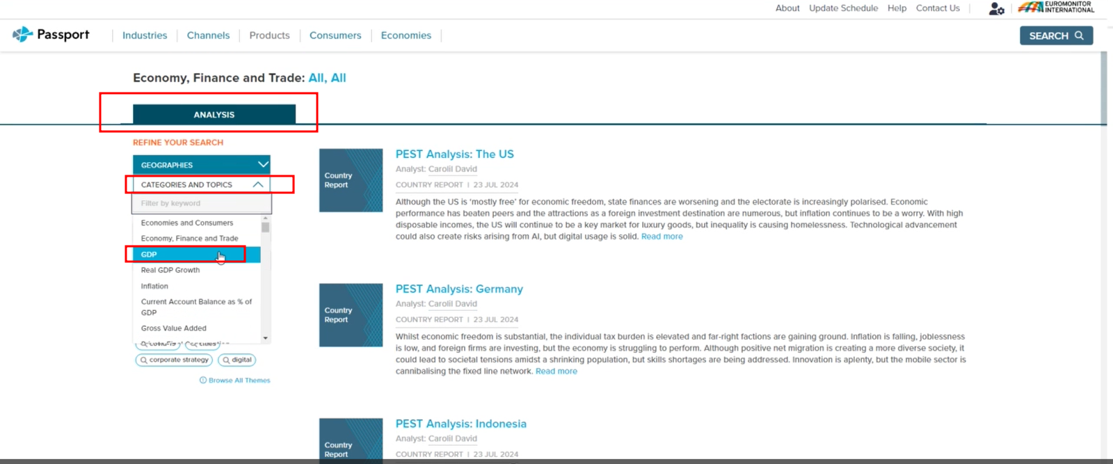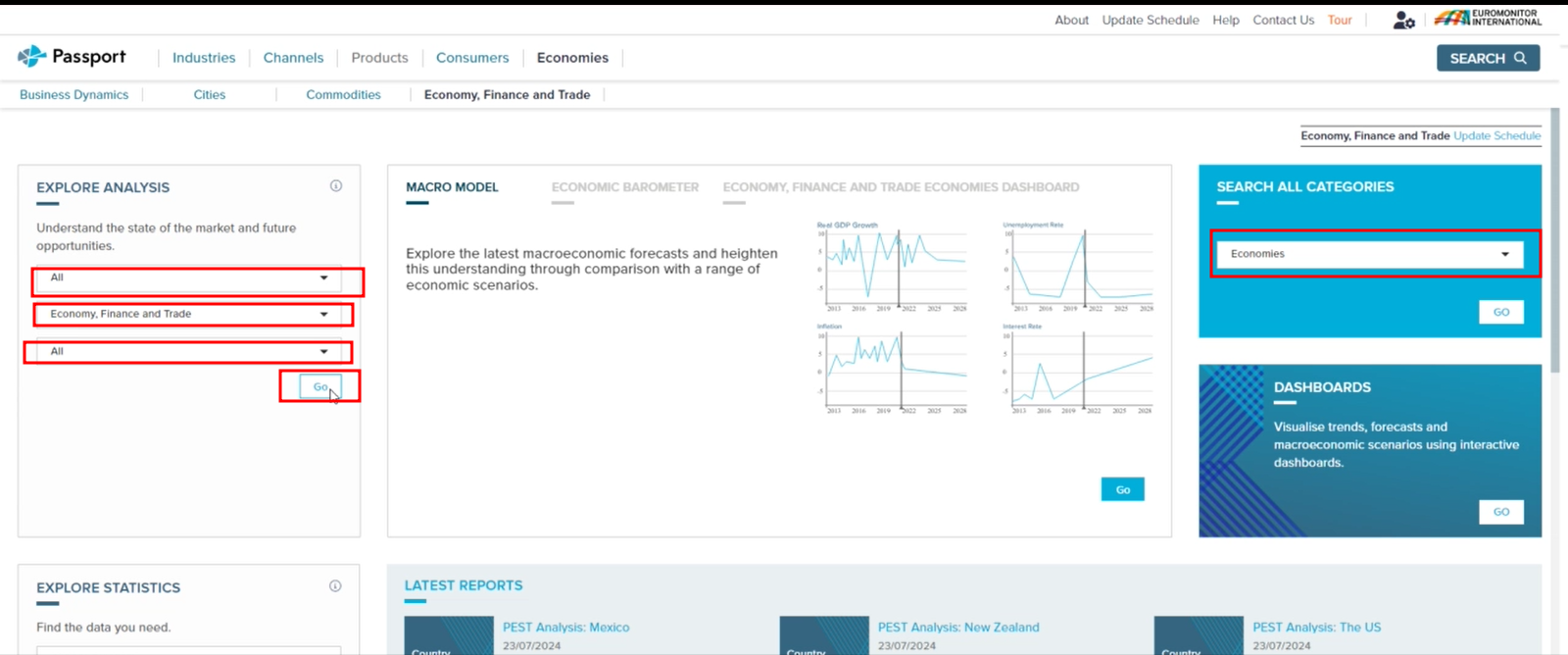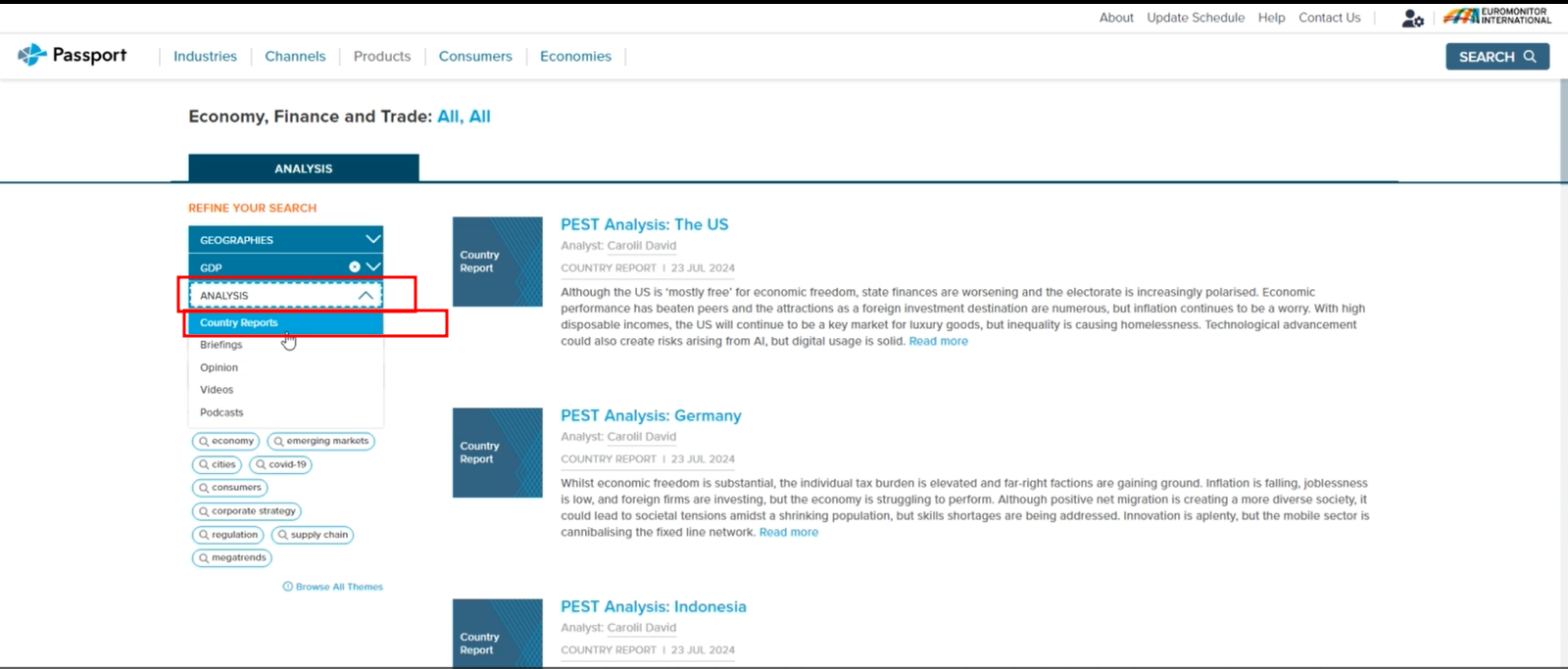 Euromonitor Passport is a global market research database providing insight on industries, economies and consumers worldwide, helping clients analyse market context and identify future trends impacting businesses globally. It offers in-depth information and analysis on industries and consumers for 1200 cities and 210 countries.