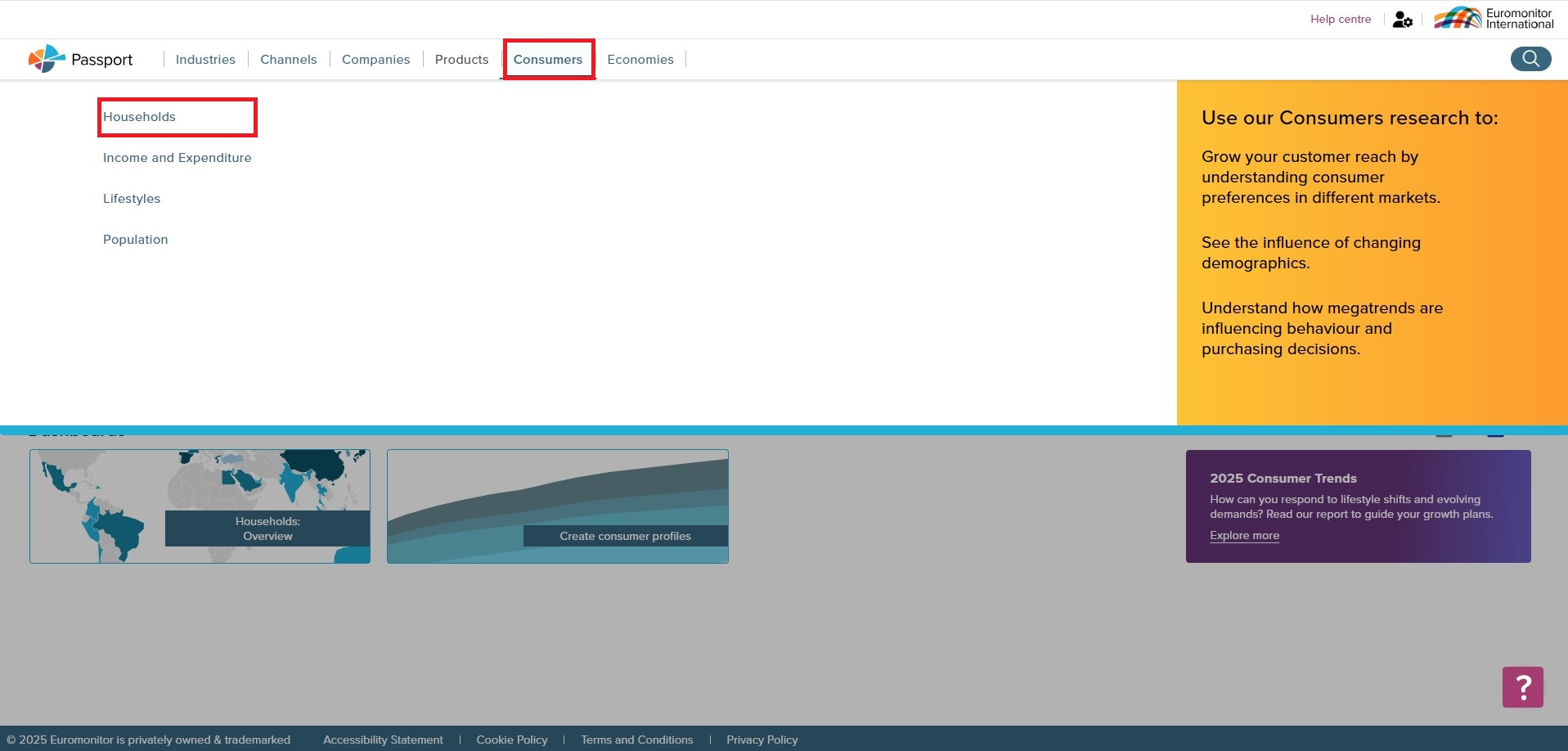 Euromonitor Passport is a global market research database providing insight on industries, economies and consumers worldwide, helping clients analyse market context and identify future trends impacting businesses globally. It offers in-depth information and analysis on industries and consumers for 1200 cities and 210 countries.
