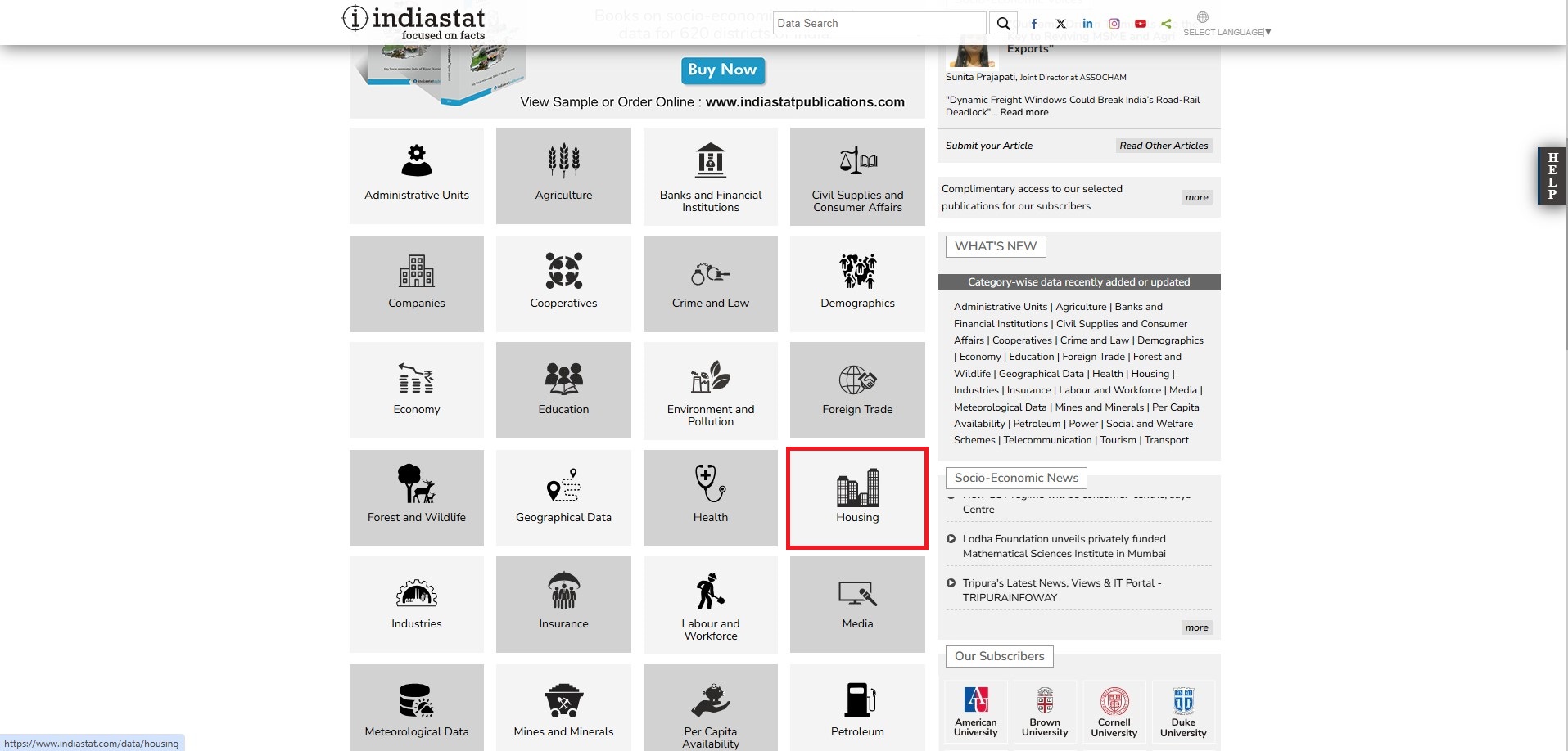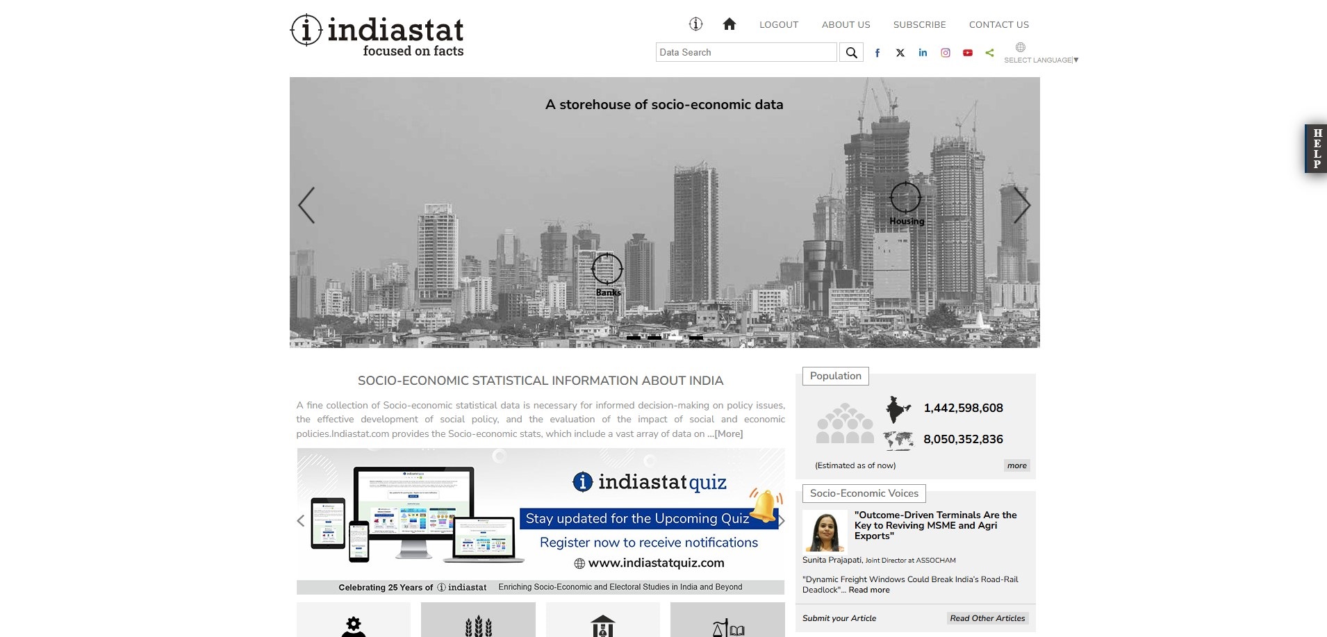 Indiastat serves with authentic and perhaps the most comprehensive compilation of secondary-level socio-economic statistical information about India and its states on various socio-economic parameters. These parameters are General Info, Demographics, Economy, Agriculture, Civil Supplies and Consumer Affairs, Environment, and Forest, Industries, Infrastructure, Companies, Education, Health, Housing, Labour & Workforce, Polity, Media, Insurance, Tourism, Crime & Law, Social Welfare & Developmental Schemes, etc.