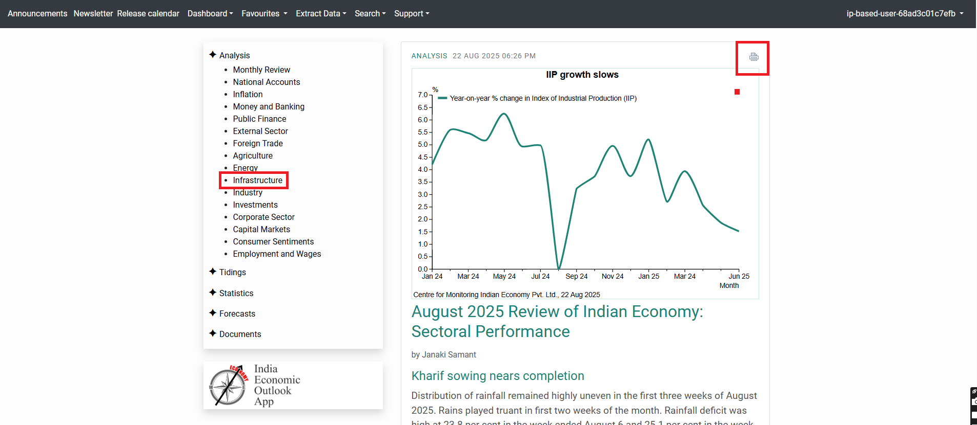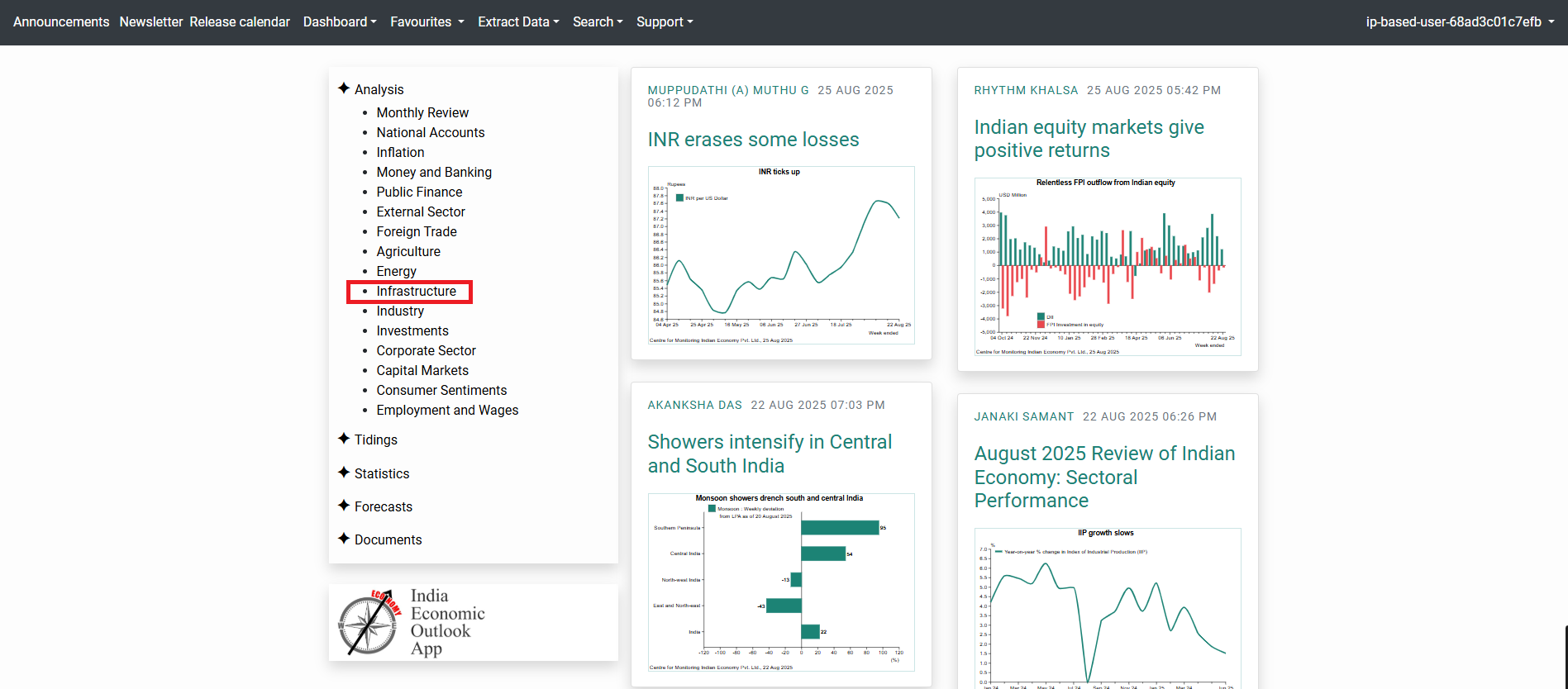 Economic Outlook offers unbiased analysis and short- to medium-term forecasts about the Indian economy. The service compiles a time series of more than 500,000 indicators from numerous reputable and authoritative sources.