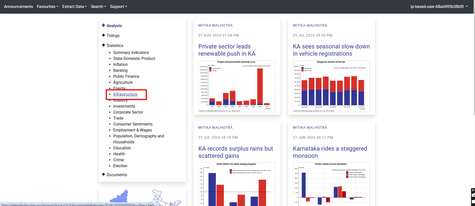 States of India is a large statistical compendium of the 37 states, union territories 724 districts of India. Statistics on states are released by various state & central agencies. CMIE excels in compiling all this information into one cohesive and seamless offering.States of India focuses on providing up-to-date data and up-to-date news on the individual regions. There are over 85 million time series in this service. All information is available in a clean and easily usable form so that when you need it, you find it without much ado.The statistics covered here include a wide spectrum of economic and socio-economic indicators. This is a veritable Goldmine for an analyst. It is a convenient source to look up for quick facts as much as to conduct inter-state comparisons.