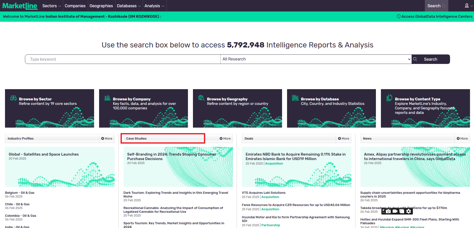 An International business information and industry analysis service. MarketLine provides original company, industry, country, city and financial reports and data based on published research and primary and secondary data sources. It also includes current market news and information on financial deals and provide the user with easy access to different kinds of contents which include Analyst insights and themed reports on cross-sector megatrends, Industry reports, case studies, and interactive models, Company profiles and case studies and Country profiles, city profiles, and country outlook and global risk reports.