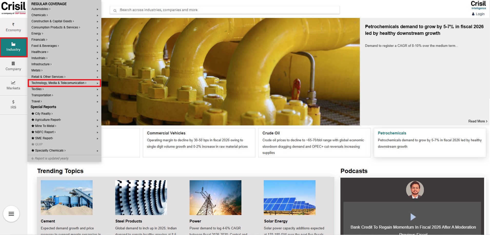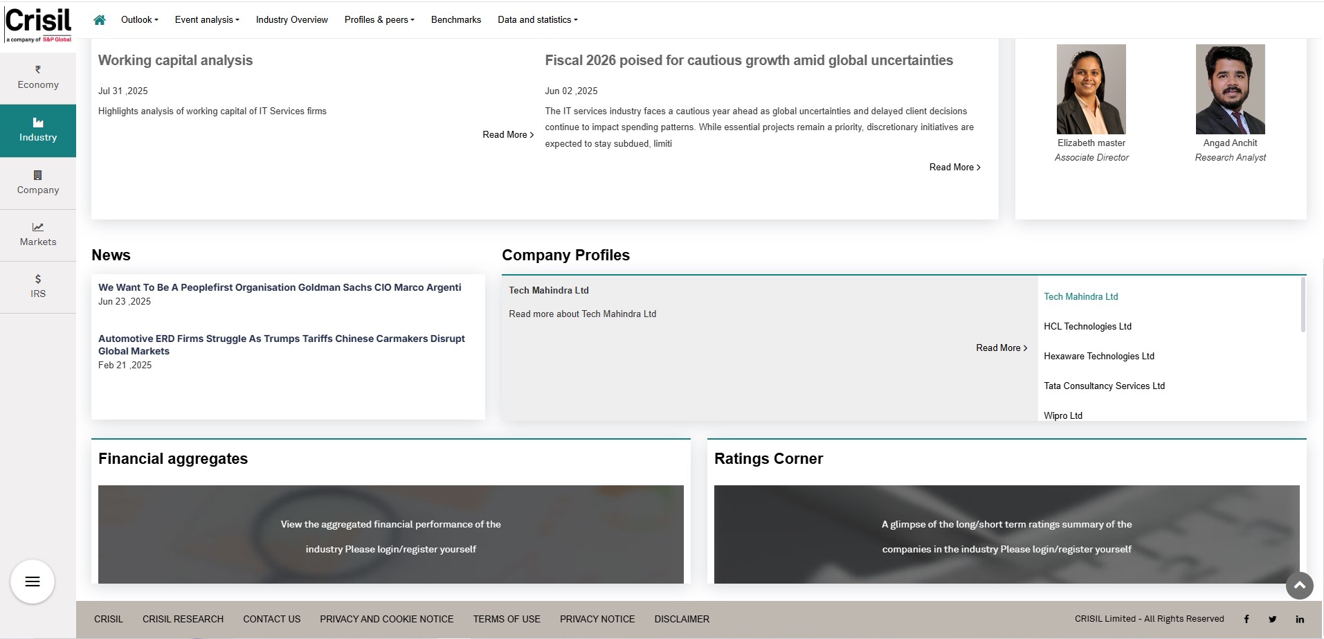 CRISIL Research is the country’s largest independent and integrated research house with strong domain expertise on Indian economy, industries and capital markets. Providing Comprehensive research coverage on the Indian economy, industries and corporates (Access to EcoView and research of 76 +industries)