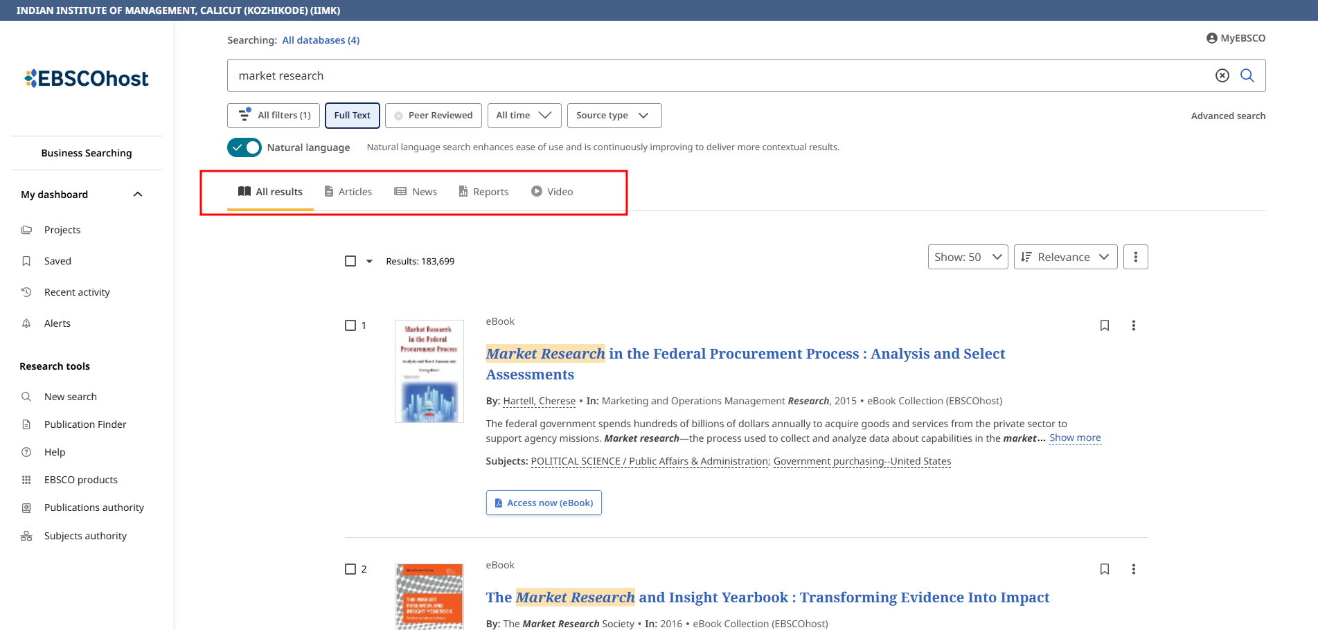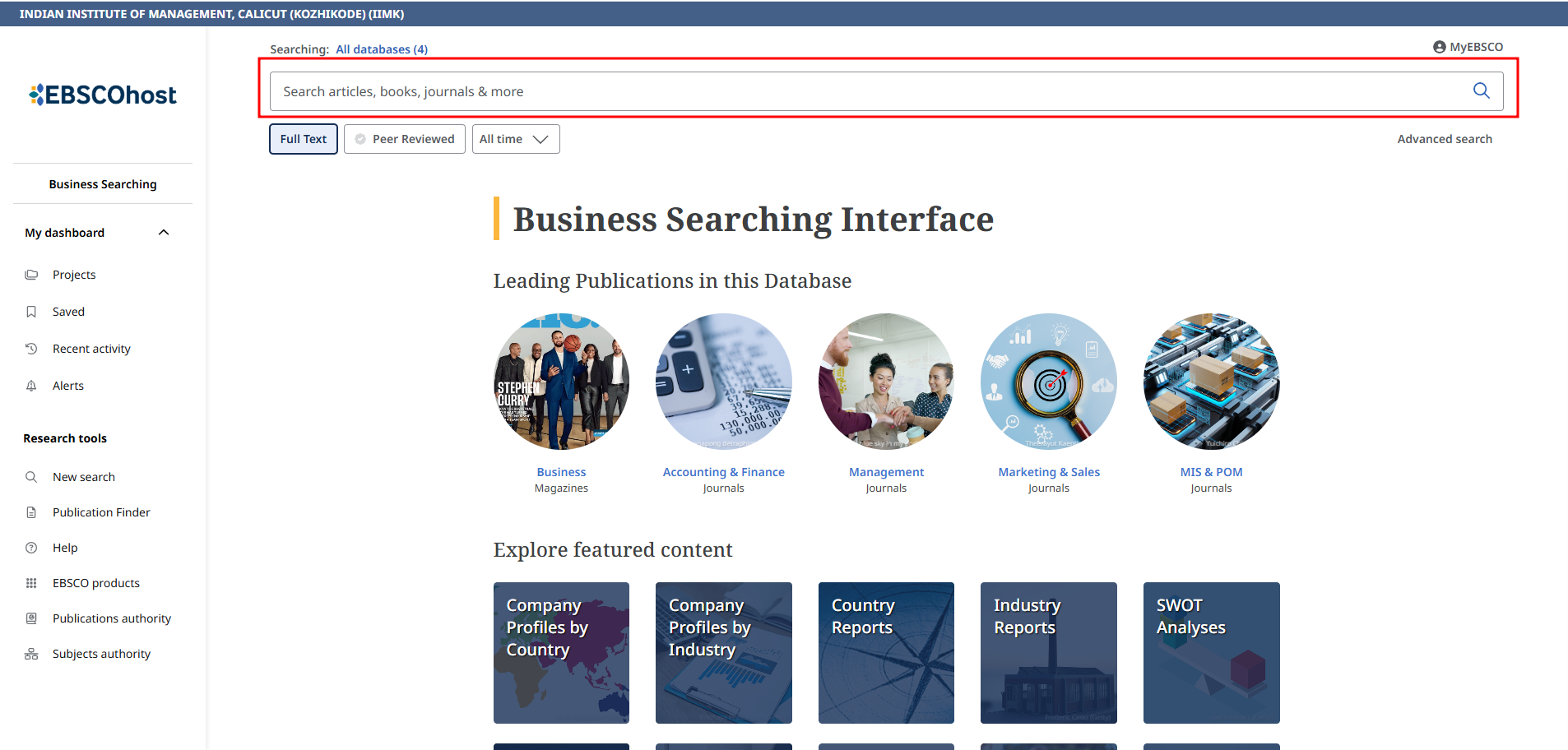 Business Source Ultimate is an aggregated full-text journal database covering almost all Business/ Management subjects like accounting, finance, banking, management information systems, production and operations management, economics, marketing, etc. The collection contains around 8000+ electronic full-text journals and magazines. It also provides profiles of companies and industries.