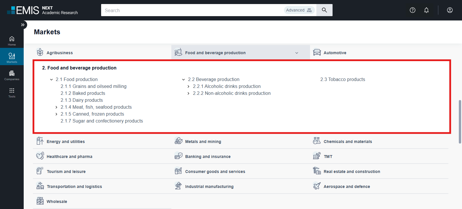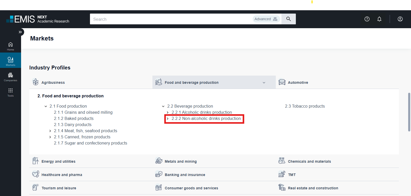 Visit EMIS >>Click on Markets >Scroll down and chose Food and Beverage>>Select Non Alcoholic drink>> View the results