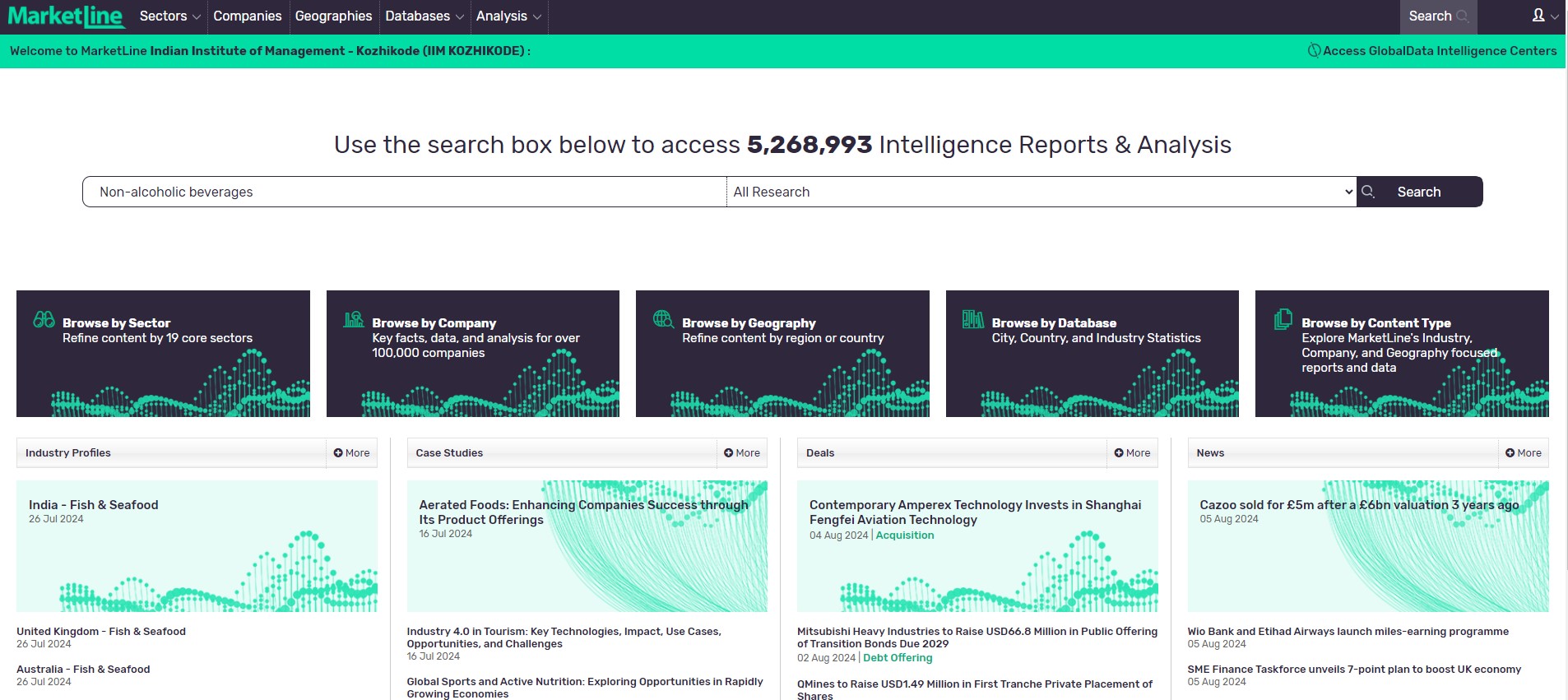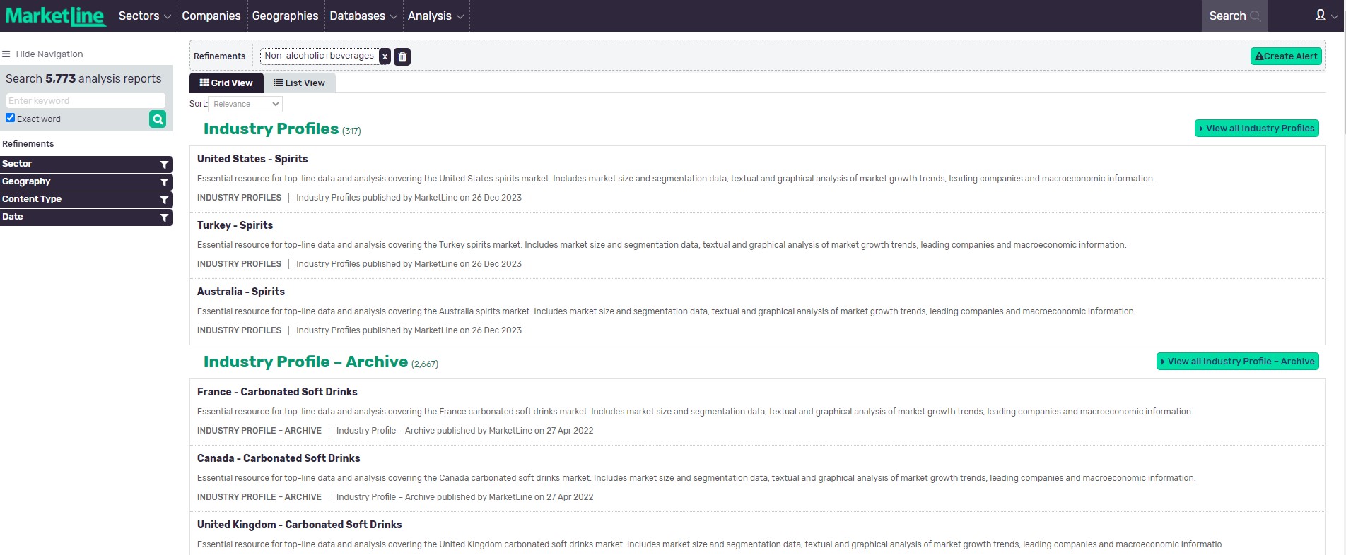 The Non-Alcoholic Beverage sector encompasses a wide range of products including bottled water, carbonated soft drinks, juices, ready-to-drink teas and coffees, functional beverages, dairy-based drinks, energy and sports drinks, and plant-based alternatives. As a fast-growing area of the global food and beverage industry, this sector is shaped by evolving consumer preferences, health and wellness trends, sustainability initiatives, innovation in product formulation, and dynamic competitive landscapes. This guide brings together specialized databases that provide comprehensive insights into the Non-Alcoholic Beverage sector. Users will find guidance on how to locate and access the most relevant and authoritative information sources available through the library.
