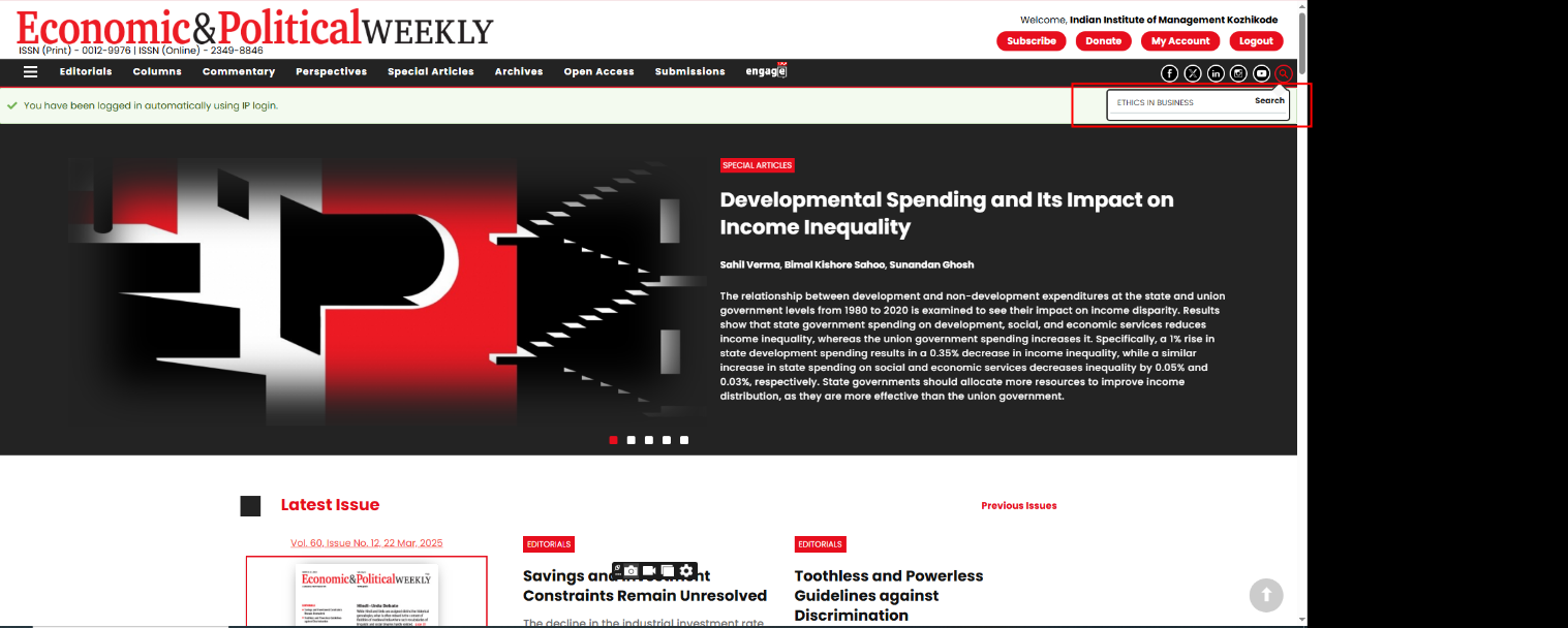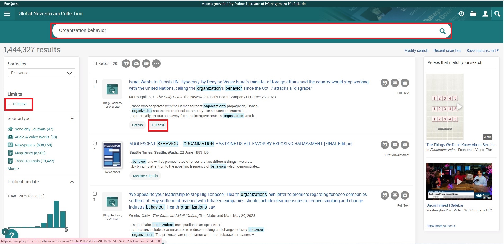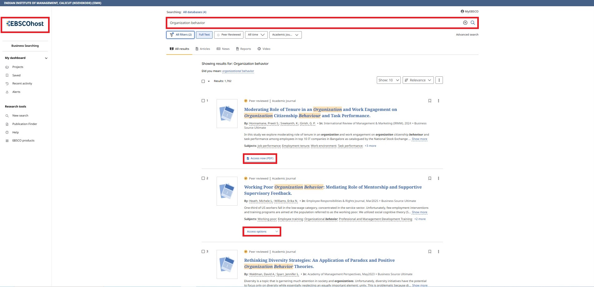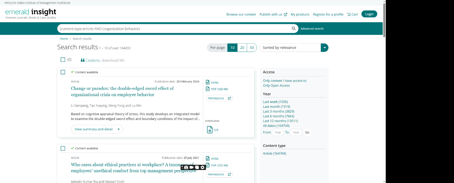 Business Source Ultimate is an aggregated full-text journal database covering almost all Business/ Management subjects like accounting, finance, banking, management information systems, production and operations management, economics, marketing, etc. The collection contains around 8000+ electronic full-text journals and magazines. It also provides profiles of companies and industries.