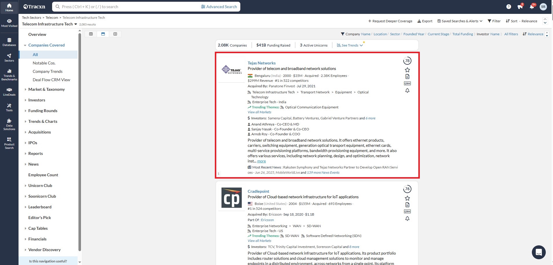 Tracxn is a Private Market Research Platform tailored for students interested in exploring the world of Startups, Emerging Industries, Investment Trends, and much more. It is an invaluable resource that provides comprehensive insights, data, and information into the startup ecosystem, from company financials to details on funding rounds. Tracxn also provides detailed coverage on 4.01M+ companies worldwide, VC/PE analytics, and investment perspective analysis on 250+ industry sectors. Company profiles include detailed competitive landscape, funding information, and Tracxn analysts’ ratings.
