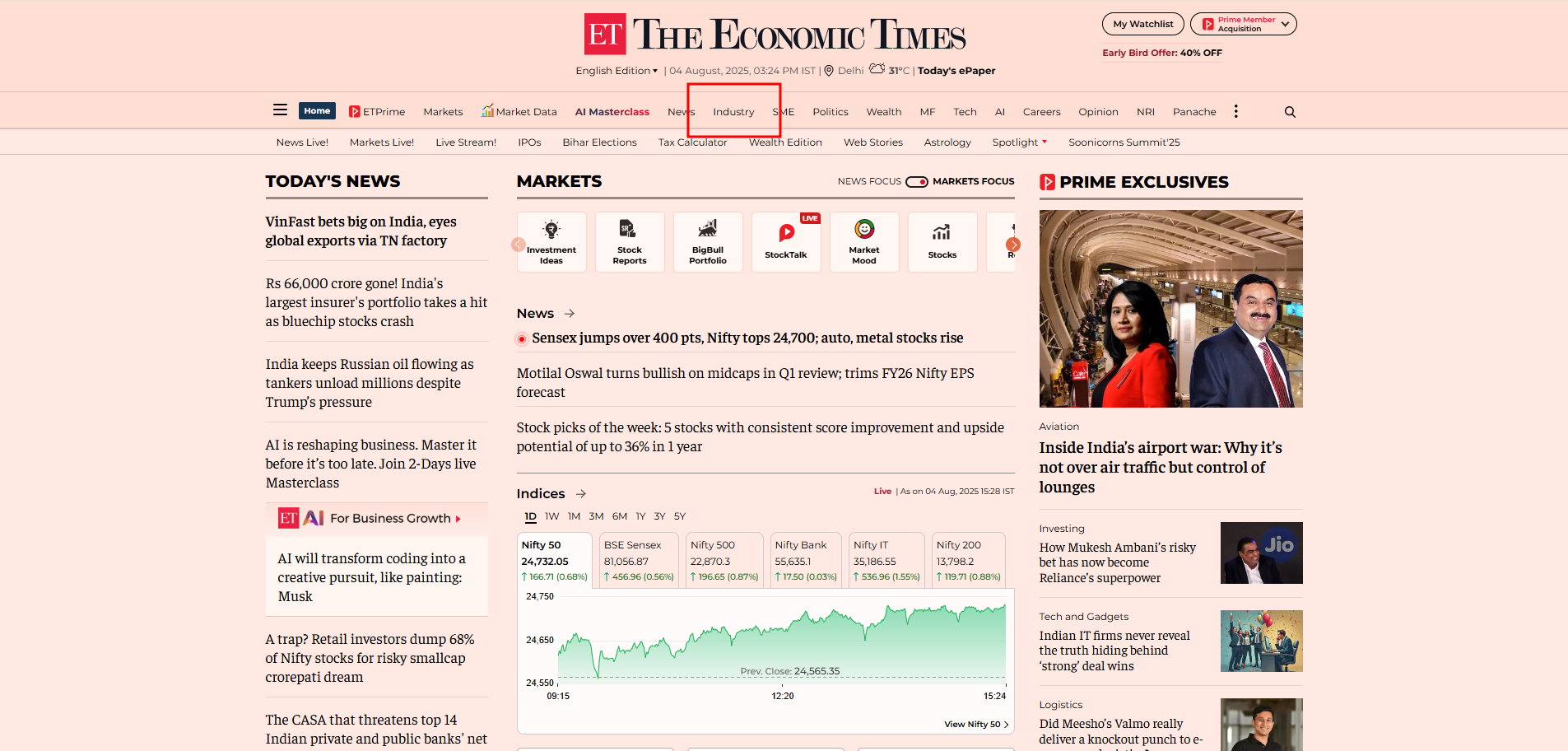 ET Prime is a members-only business storytelling platform from the house of The Economic Times, India's oldest and most trusted business news brand. Sharp insights into more than 20+ industries; it provides specialized data on media, telecommunications, medicines, cars, banking, economic trends, climate change, etc.