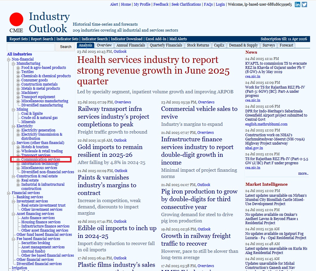 - CMIE Industry outlook