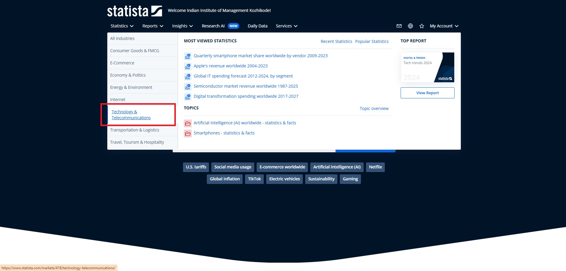 The Telecommunication sector plays a crucial role in connecting people, businesses, and digital infrastructure worldwide. This industry encompasses fixed-line and mobile networks, broadband and fiber services, satellite communications, internet service providers, and emerging technologies such as 5G, cloud communications, and the Internet of Things (IoT). The sector is shaped by rapid technological innovation, evolving consumer demand, regulatory frameworks, infrastructure investment, and increasing digitalization across all industries. This guide brings together key library databases that provide comprehensive insights into the global telecommunications landscape.