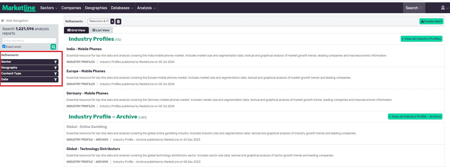 An International business information and industry analysis service. MarketLine provides original company, industry, country, city and financial reports and data based on published research and primary and secondary data sources. It also includes current market news and information on financial deals and provide the user with easy access to different kinds of contents which include Analyst insights and themed reports on cross-sector megatrends, Industry reports, case studies, and interactive models, Company profiles and case studies and Country profiles, city profiles, and country outlook and global risk reports.