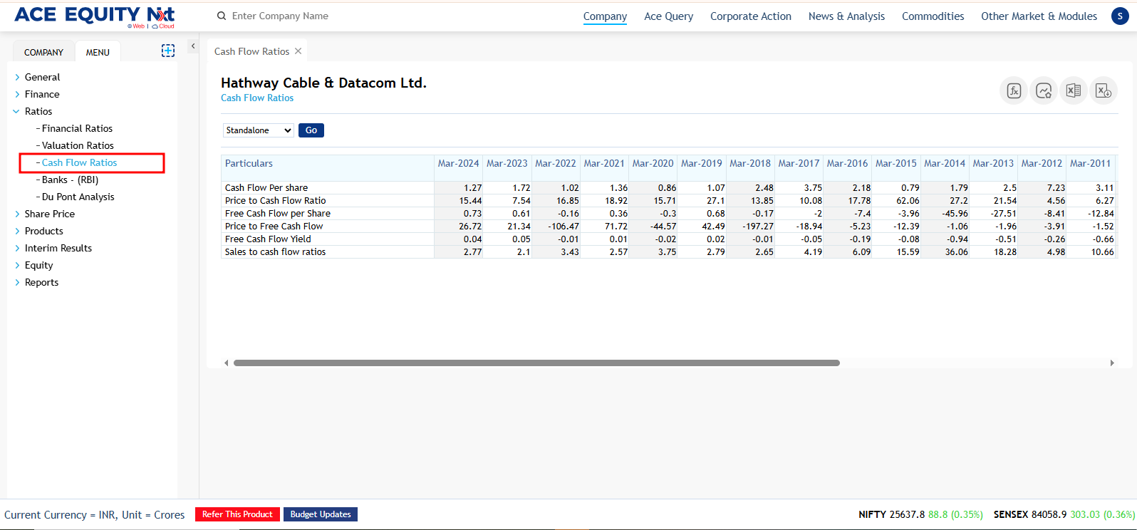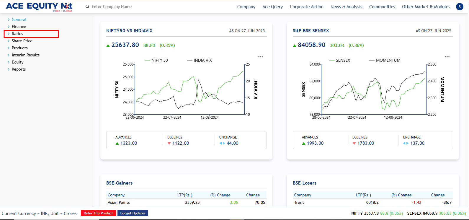 ACE EQUITY Nxt..is a Windows based application where the product data is hosted in cloud. Product provides comprehensive financial data of listed and private companies. The company financial information is available for more than 40,000 Indian companies, including 7,000 listed and 33,000 private with 1750 unique financial data fields compiled from the Annual Report. It also provides company’s non-financial information such as board of directors, share holding pattern, Corporate actions etc. The application is designed in such a manner that with minimal clicks user can achieve the desired output