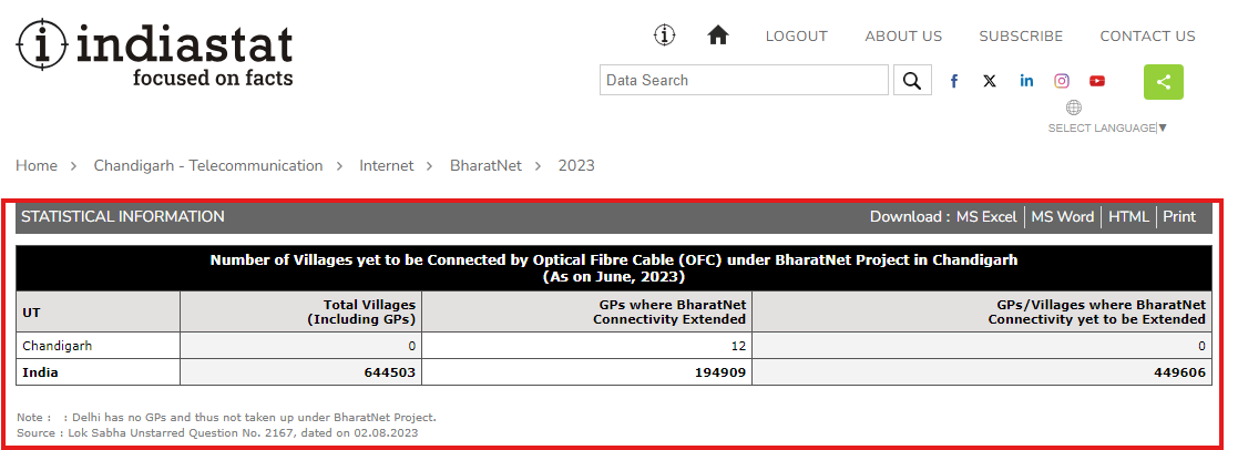 Indiastat serves with authentic and perhaps the most comprehensive compilation of secondary-level socio-economic statistical information about India and its states on various socio-economic parameters. These parameters are General Info, Demographics, Economy, Agriculture, Civil Supplies and Consumer Affairs, Environment, and Forest, Industries, Infrastructure, Companies, Education, Health, Housing, Labour & Workforce, Polity, Media, Insurance, Tourism, Crime & Law, Social Welfare & Developmental Schemes, etc.