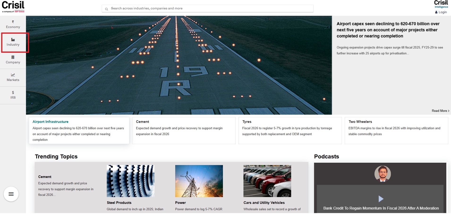CRISIL Research is the country’s largest independent and integrated research house with strong domain expertise on Indian economy, industries and capital markets. Providing Comprehensive research coverage on the Indian economy, industries and corporates (Access to EcoView and research of 76 +industries)
