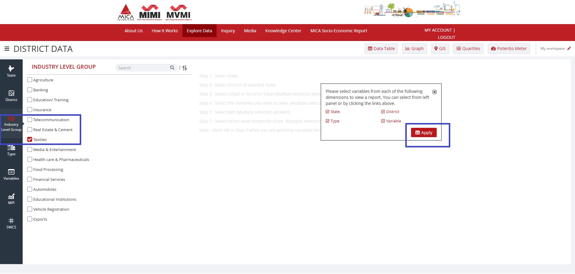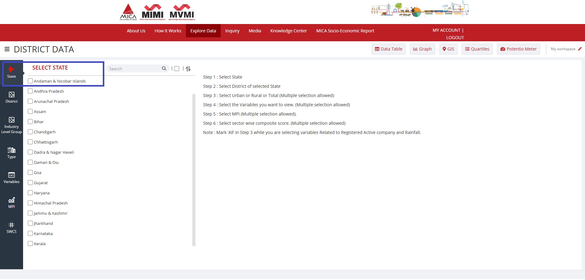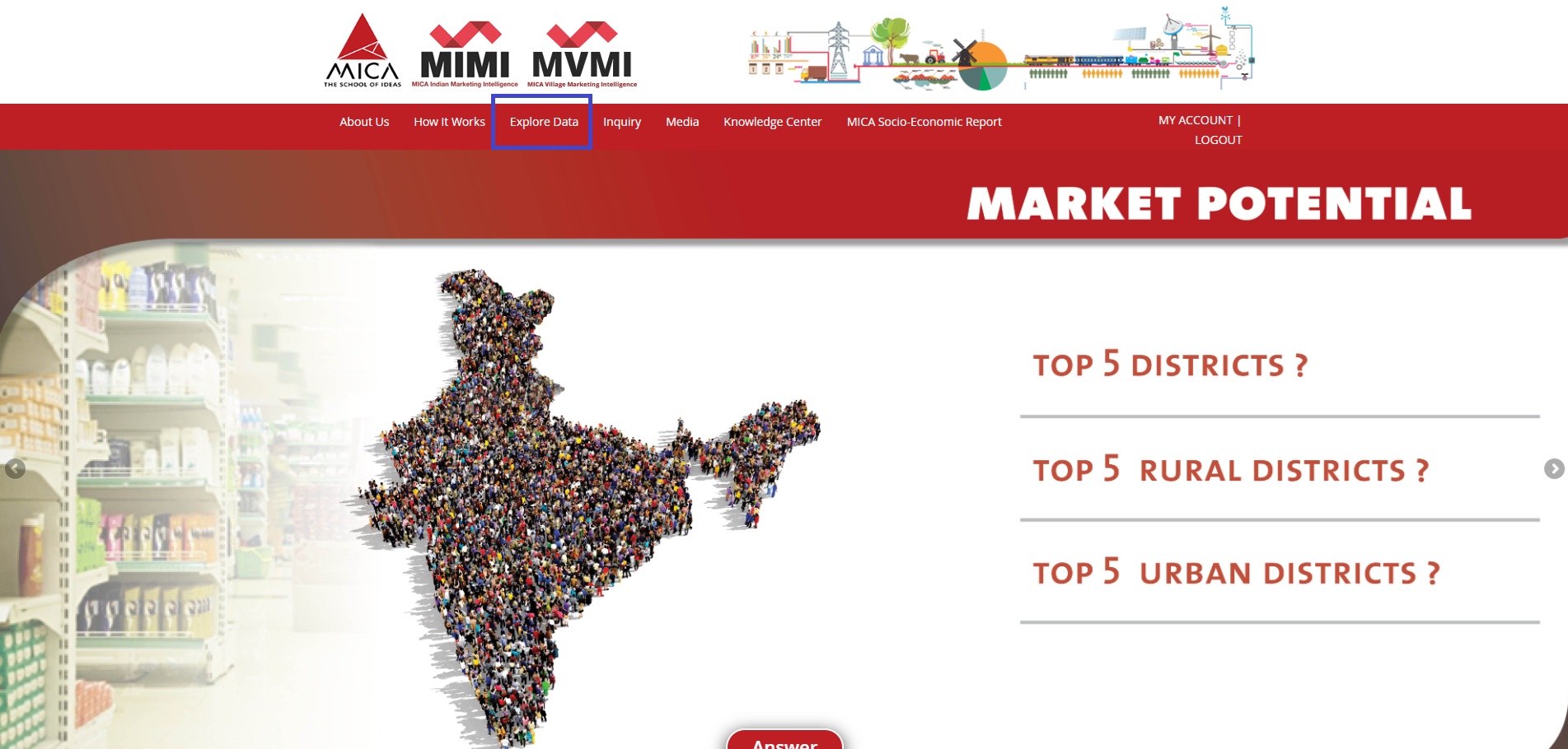 MVMI:- MICA Village Marketing Intelligence (MVMI) is first in its type, and it provides the secondary data for socio-economic variables and market intelligence up to the Village level for all the States and Union Territories of India. The summary of such information is provided up to District level and Sub-District level. In addition to that Rural MPI (Market Potential Index) for 630 Districts is also provided.