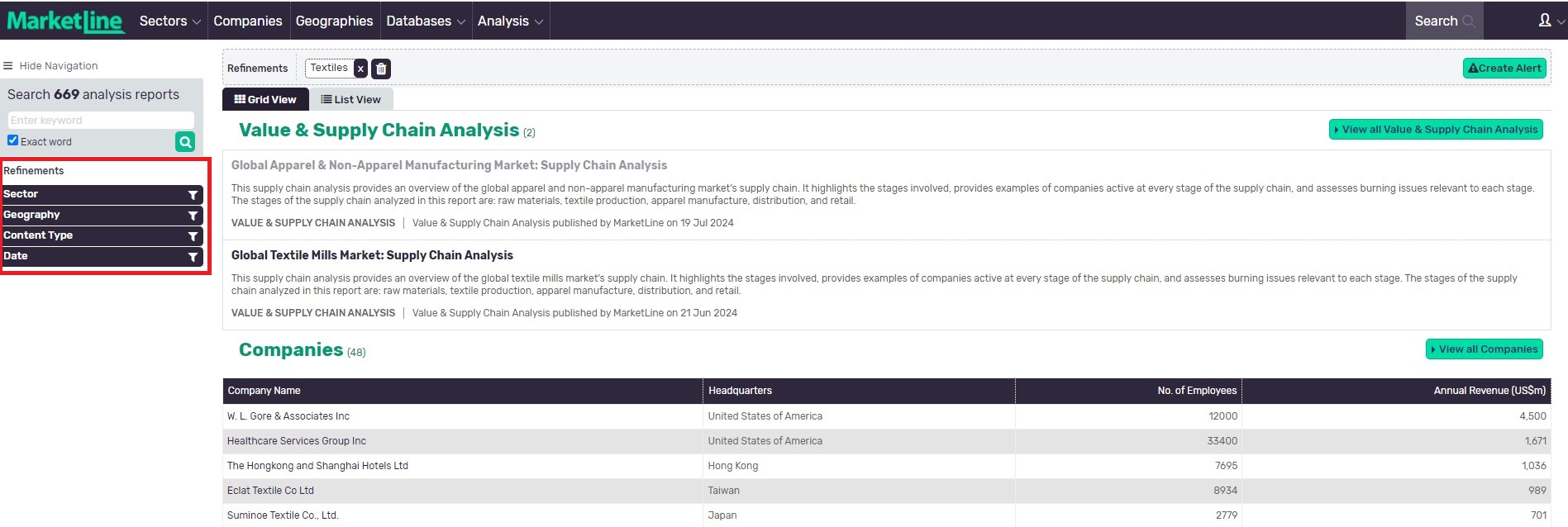An International business information and industry analysis service. MarketLine provides original company, industry, country, city and financial reports and data based on published research and primary and secondary data sources. It also includes current market news and information on financial deals and provide the user with easy access to different kinds of contents which include Analyst insights and themed reports on cross-sector megatrends, Industry reports, case studies, and interactive models, Company profiles and case studies and Country profiles, city profiles, and country outlook and global risk reports.