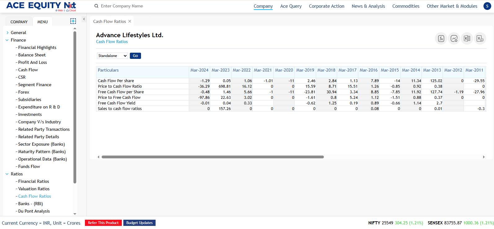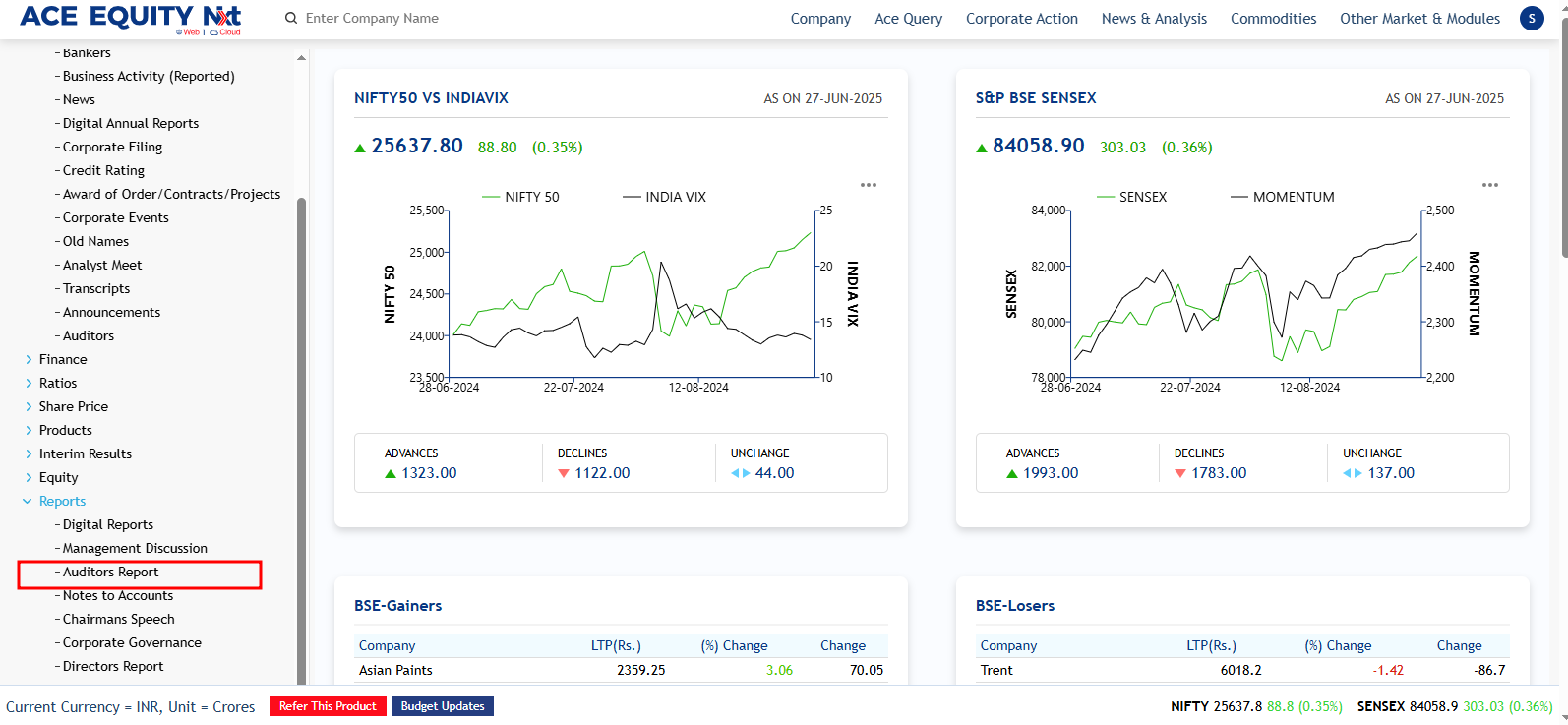 ACE EQUITY Nxt..is a Windows based application where the product data is hosted in cloud. Product provides comprehensive financial data of listed and private companies. The company financial information is available for more than 40,000 Indian companies, including 7,000 listed and 33,000 private with 1750 unique financial data fields compiled from the Annual Report. It also provides company’s non-financial information such as board of directors, share holding pattern, Corporate actions etc. The application is designed in such a manner that with minimal clicks user can achieve the desired output