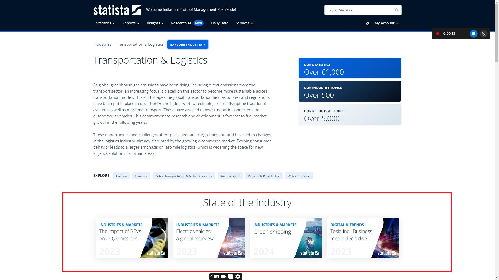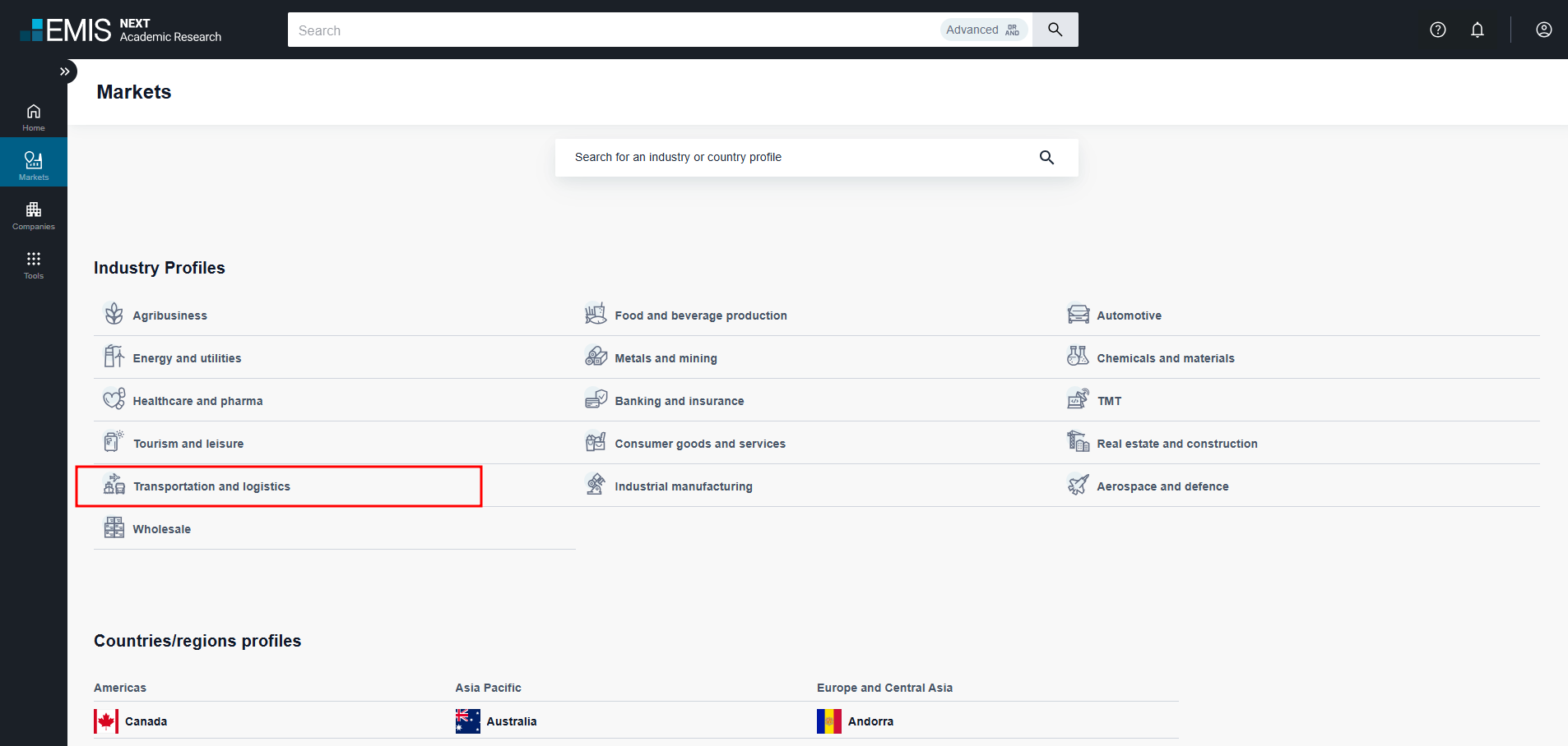 The Transportation Services sector encompasses the movement of people and goods across a wide range of modes, including road, rail, air, and maritime transport, as well as logistics, warehousing, and supply chain management. As a vital component of global commerce and economic development, the sector is shaped by technological innovation, infrastructure investment, regulatory policies, fuel and energy trends, environmental considerations, and shifting patterns in trade and mobility. This guide provides guidance on how to locate and use resources that include industry overviews, market size and growth forecasts, company profiles, financials etc.