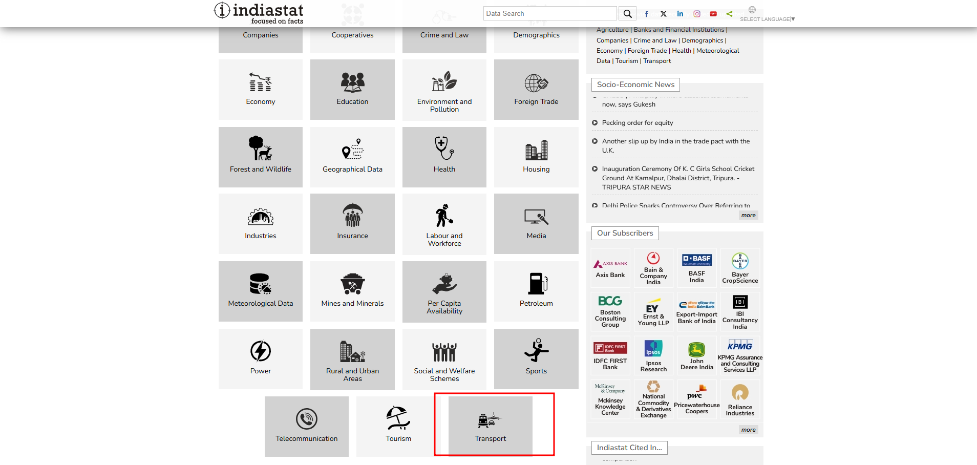 Indiastat serves with authentic and perhaps the most comprehensive compilation of secondary-level socio-economic statistical information about India and its states on various socio-economic parameters. These parameters are General Info, Demographics, Economy, Agriculture, Civil Supplies and Consumer Affairs, Environment, and Forest, Industries, Infrastructure, Companies, Education, Health, Housing, Labour & Workforce, Polity, Media, Insurance, Tourism, Crime & Law, Social Welfare & Developmental Schemes, etc.