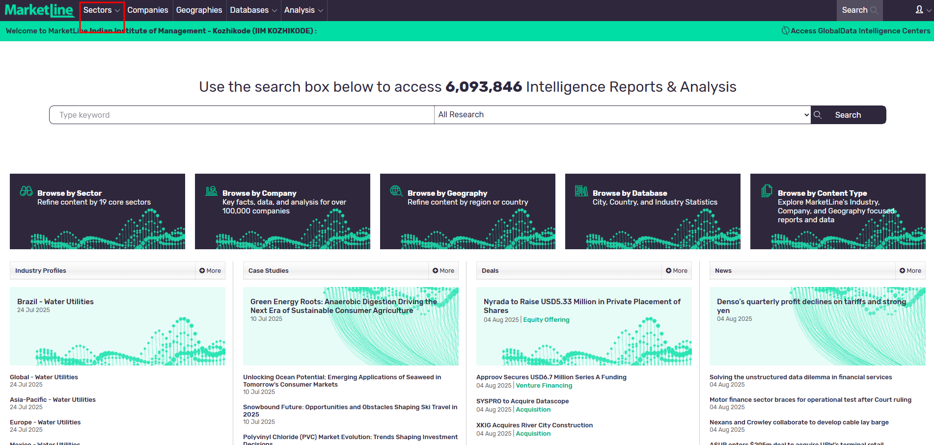 An International business information and industry analysis service. MarketLine provides original company, industry, country, city and financial reports and data based on published research and primary and secondary data sources. It also includes current market news and information on financial deals and provide the user with easy access to different kinds of contents which include Analyst insights and themed reports on cross-sector megatrends, Industry reports, case studies, and interactive models, Company profiles and case studies and Country profiles, city profiles, and country outlook and global risk reports.