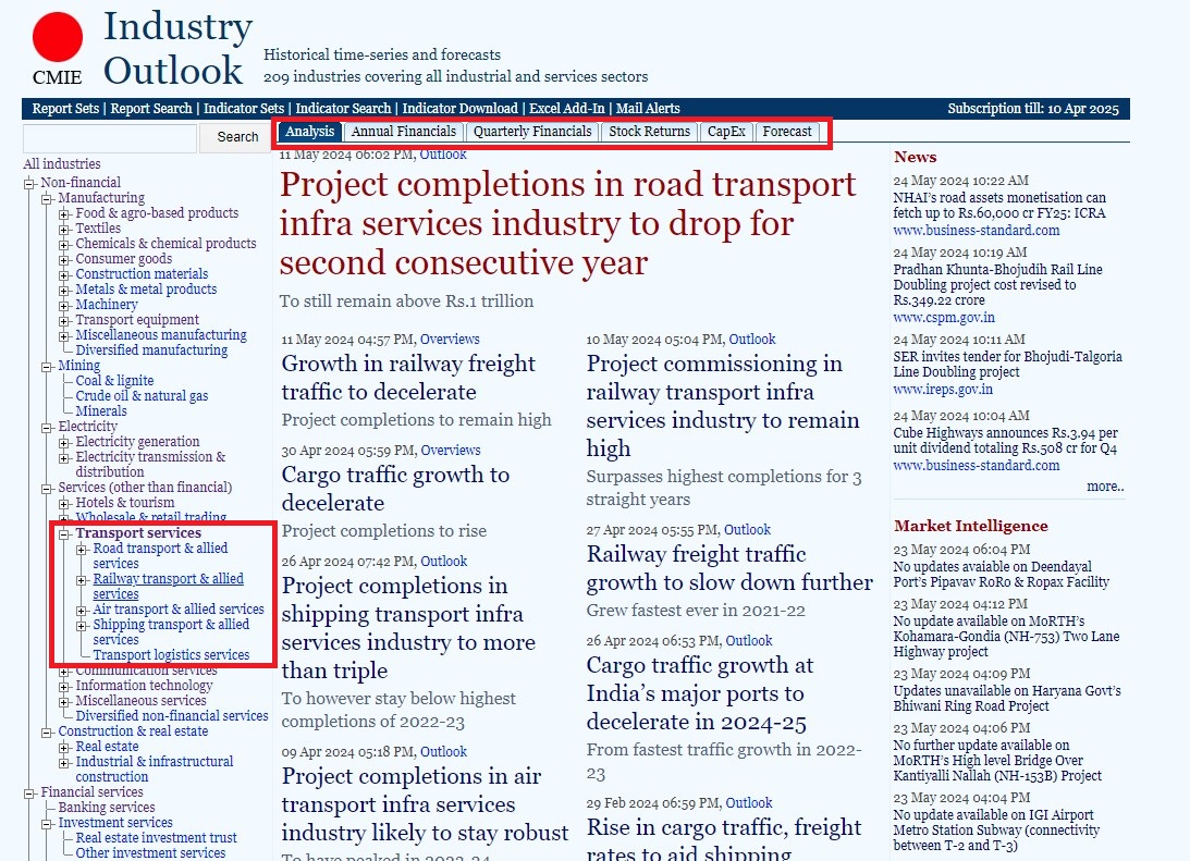 Industry Outlook provides a well-balanced presentation of data, analysis, and forecasts on 209 industries. The service draws upon data available from government sources, industry and trade associations, commodity markets, firm-level databases, and project-level information. It weaves these disparate sources into meaningful and well-organized presentations of the current and prospective trends in Indian industries. Expected creation of new capacities, projected financial performance, market share, price movements of commodities, demand-supply balances or gaps in the future - these are some of the indicators that Industry Outlook provides information on. Industry Outlook is particularly useful in understanding the current and expected trends in the economic environment in which your industry operates. These are your suppliers' industries, your customers' industries, or your competing industries. These are the industries that credit officers lend to. These are the industries that fund managers invest in. For business schools, these are the industries that the students will get into. Industry Outlook is indispensable because it is comprehensive. The service draws upon data available from government sources, industry and trade associations, commodity markets, firm-level databases, and project-level information. It weaves these disparate sources into meaningful and well-organized presentations of the current and prospective trends in Indian industries